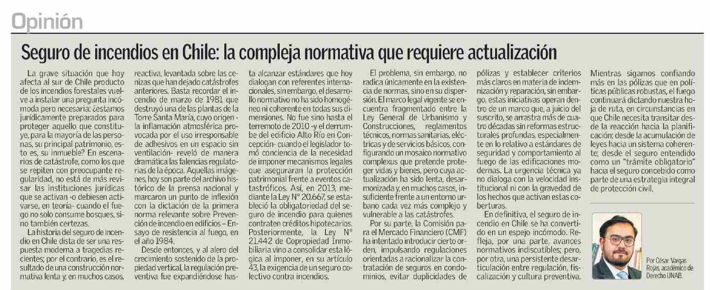 Columnas de Opinión: Seguro de incendios en Chile: la compleja normativa que requiere actualización