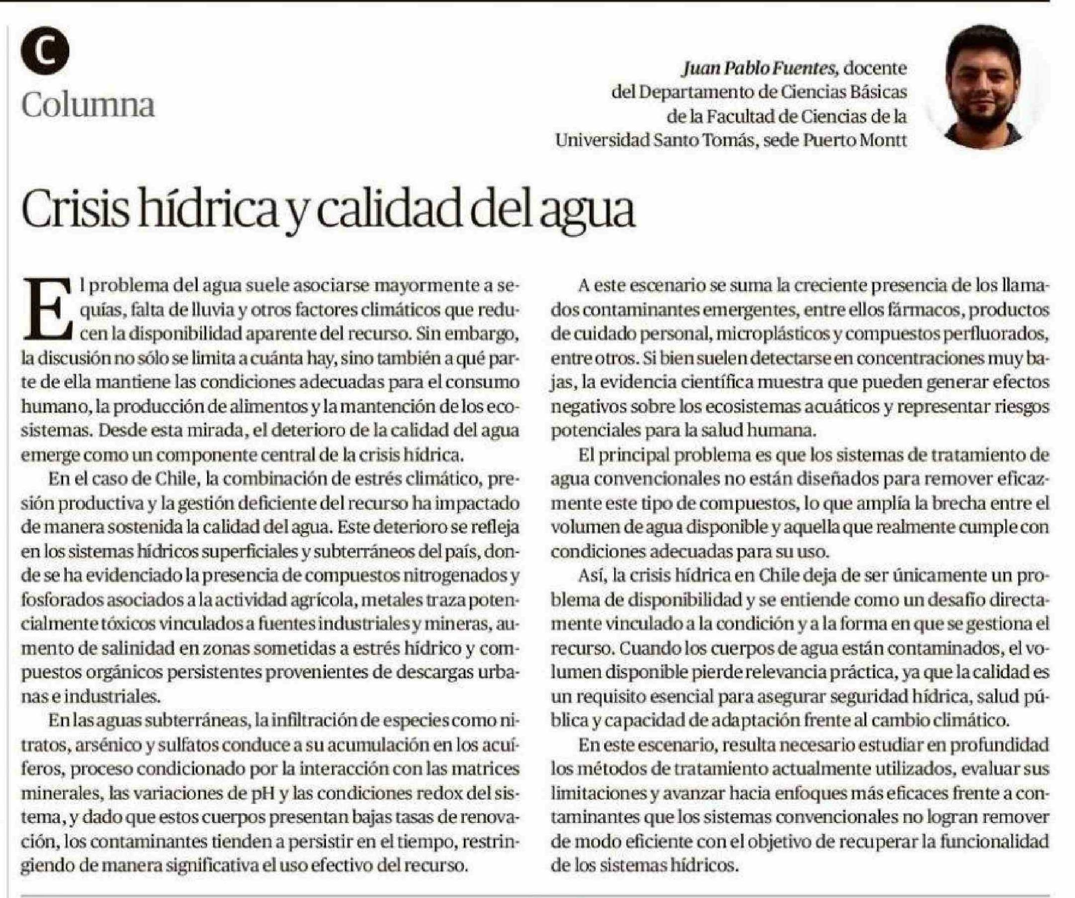 Columnas de Opinión: Crisis hídrica y calidad del agua