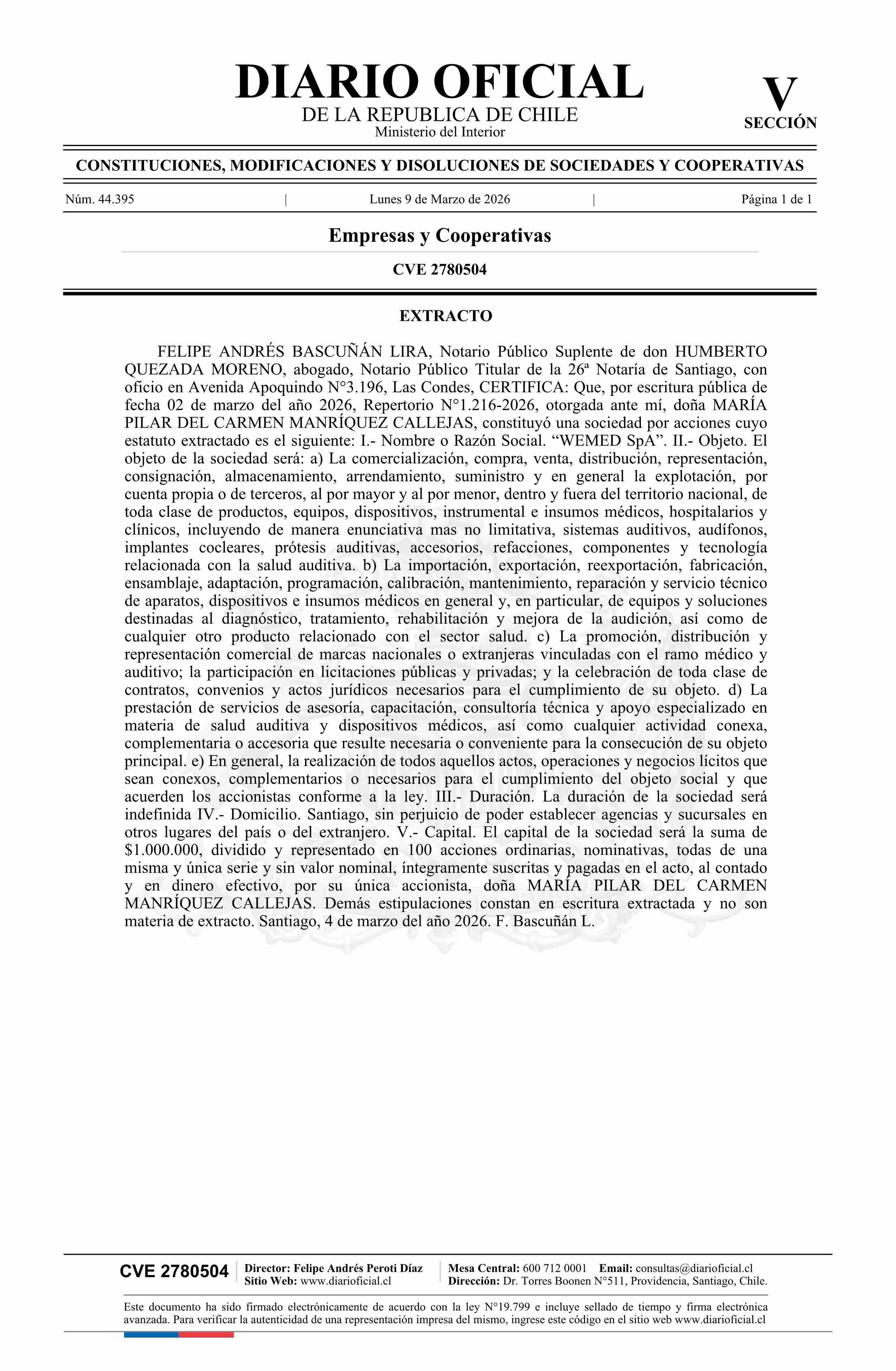 Diario Oficial Edición Electrónica (Diario Oficial de Chile - 5 Empresas Y Cooper)