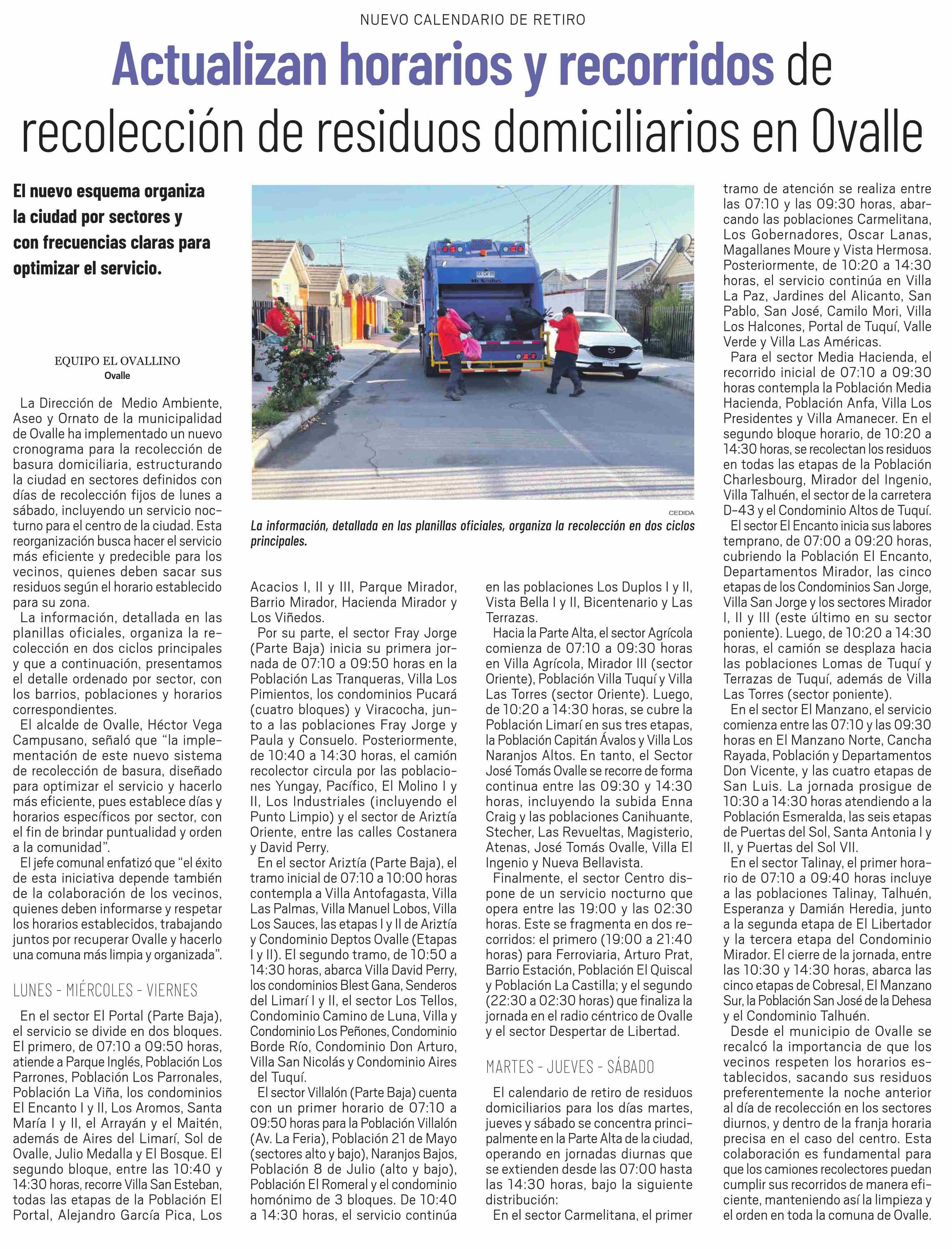 Actualizan horarios y recorridos de recolección de residuos domiciliarios en Ovalle