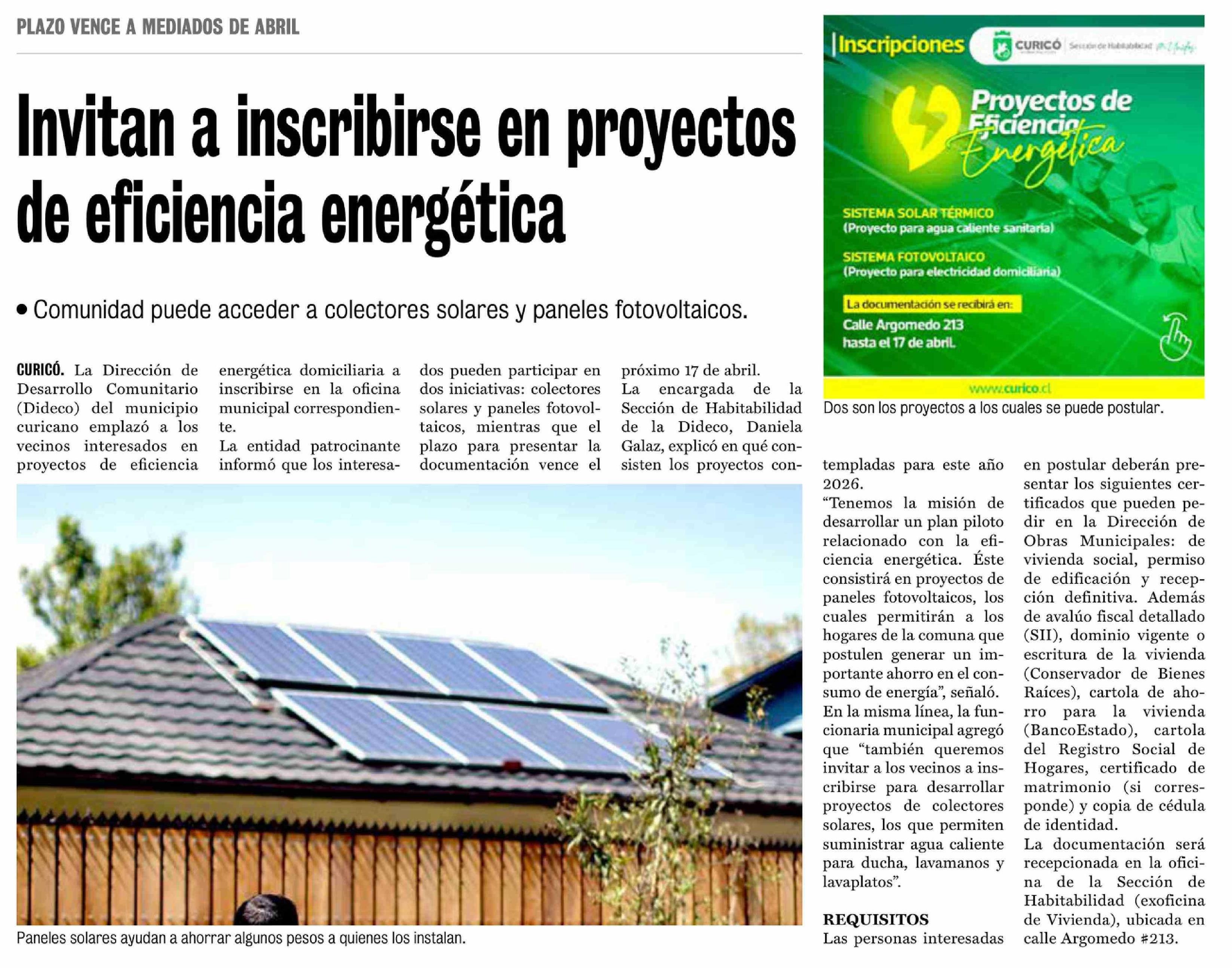Invitan a inscribirse en proyectos de eficiencia energética