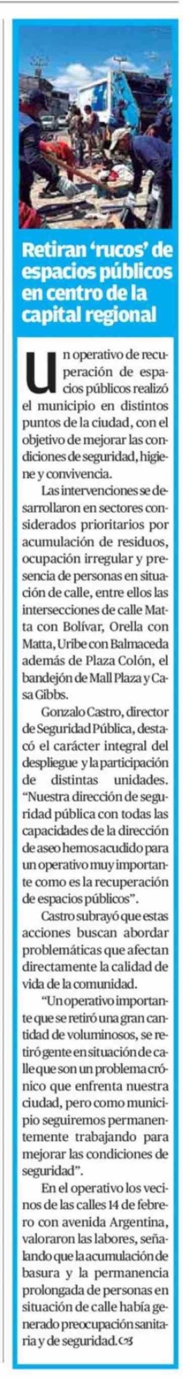 Retiran 'rucos' de espacios públicos en centro de la capital regional