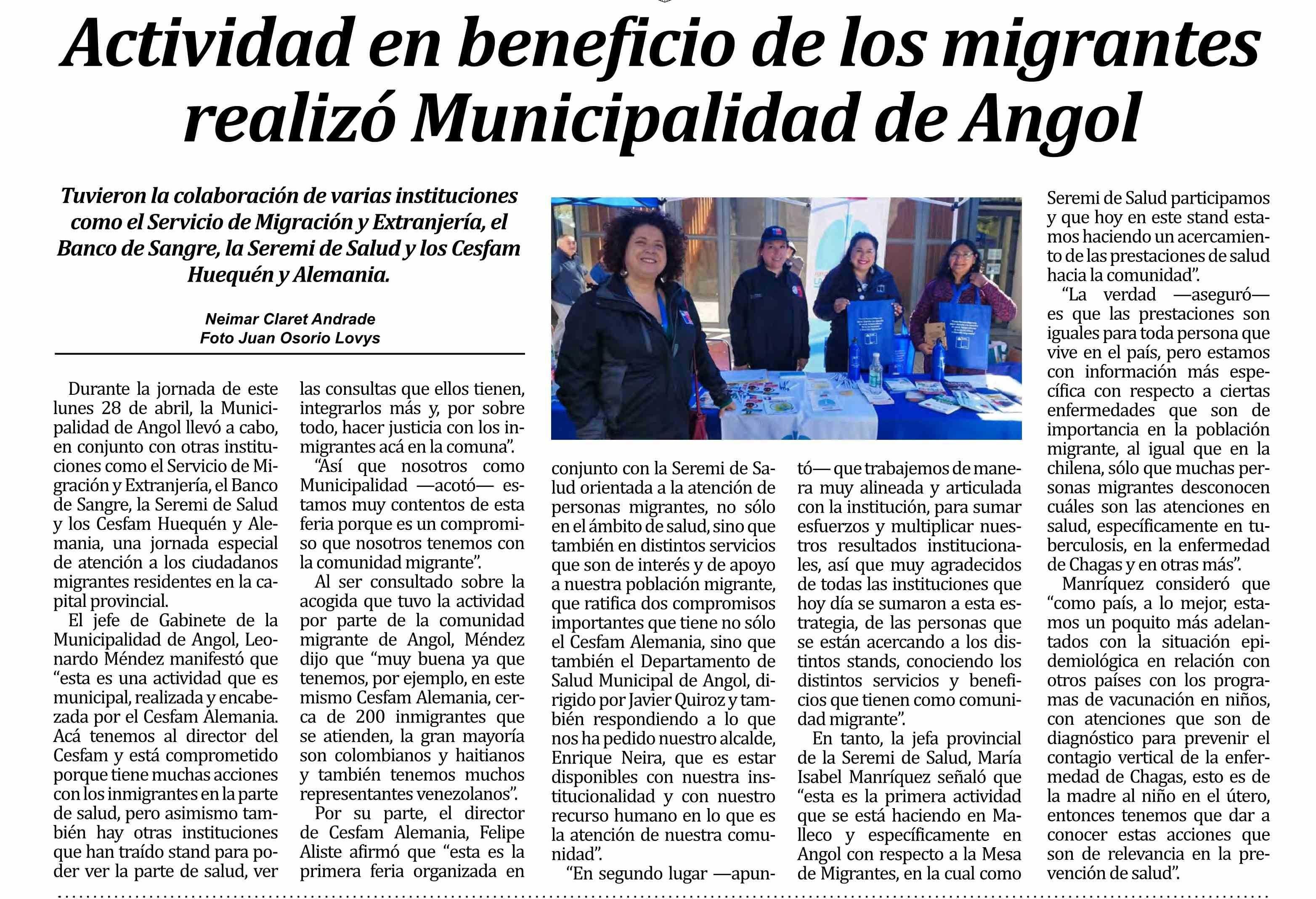Actividad en beneficio de los migrantes realizó Municipalidad de Angol
