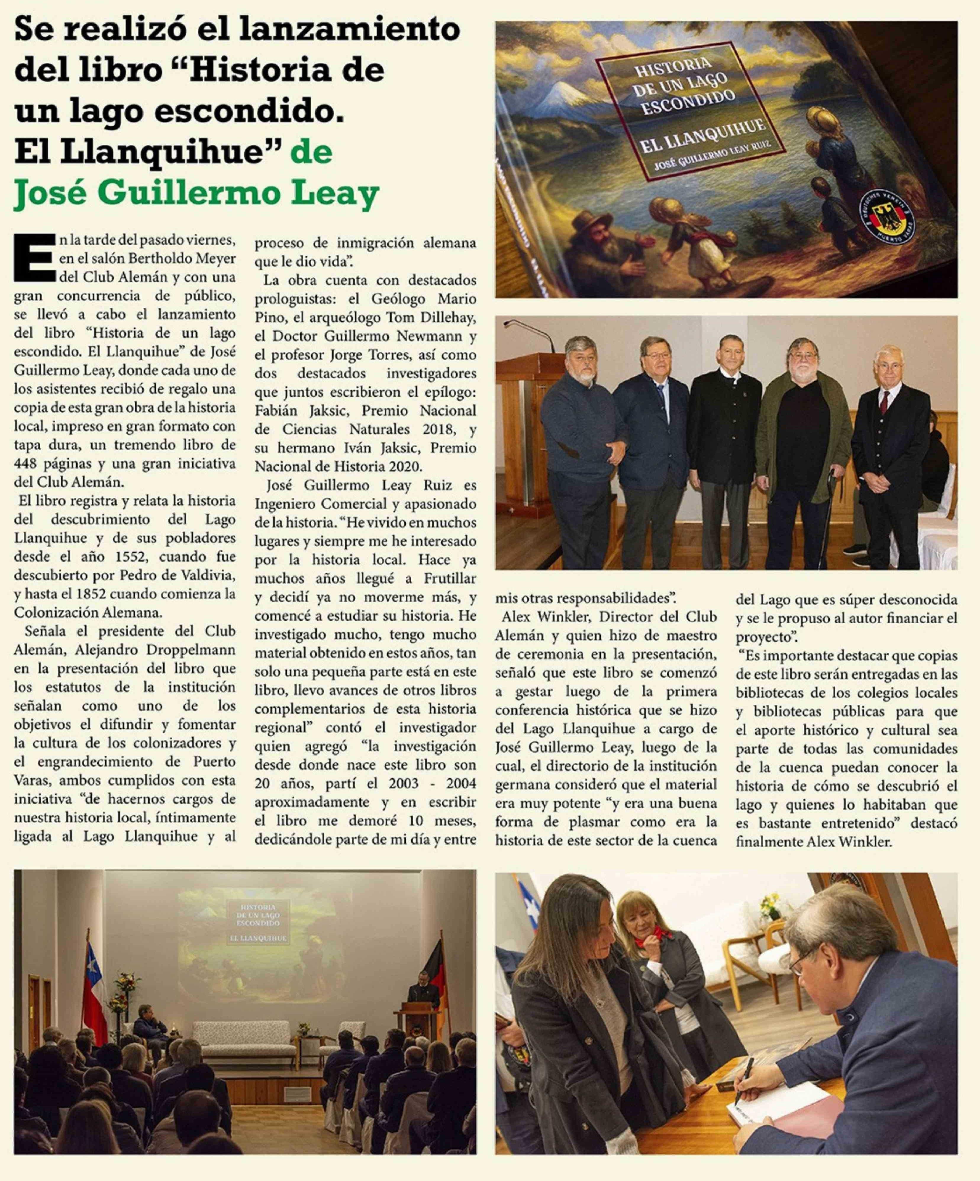 Se realizó el lanzamiento del libro "Historia de un lago escondido. El Llanquihue" de José Guillermo Leay