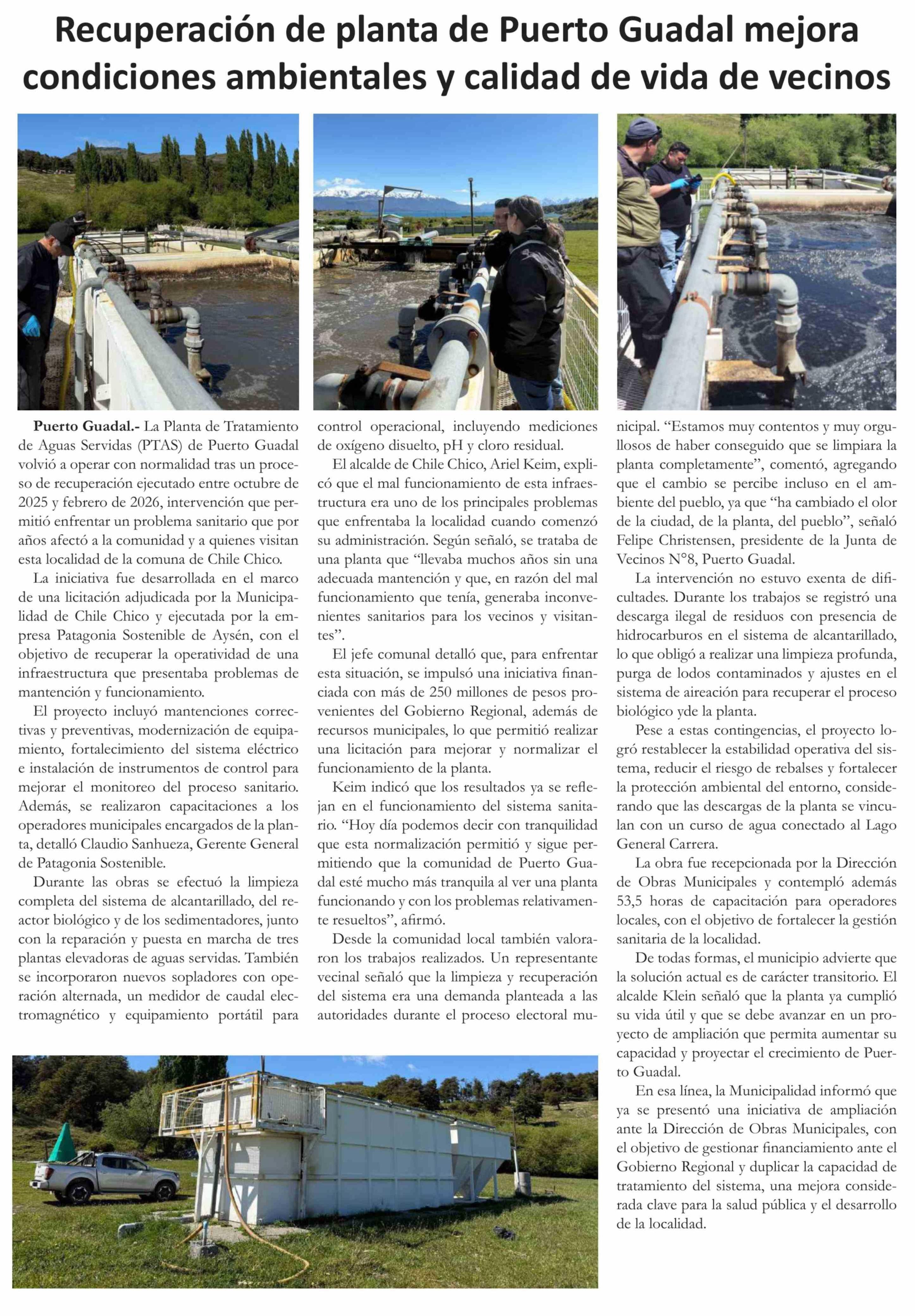 Recuperación de planta de Puerto Guadal mejora condiciones ambientales y calidad de vida de vecinos