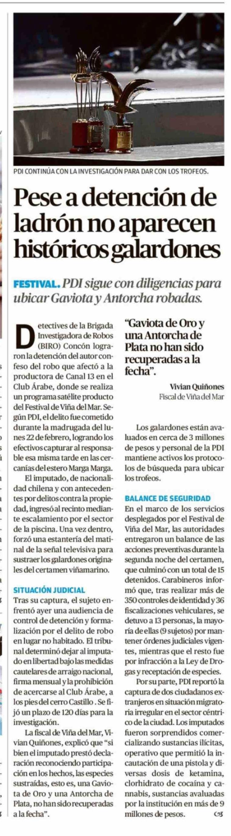 Pese a detención de ladrón no aparecen históricos galardones