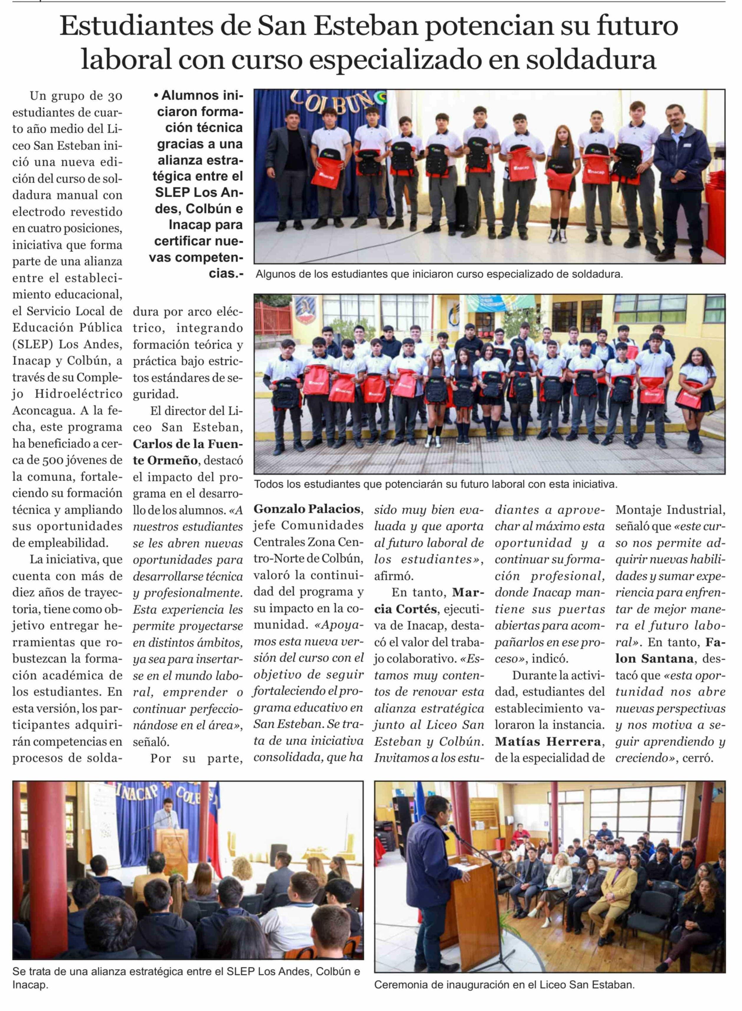 Estudiantes de San Esteban potencian su futuro laboral con curso especializado en soldadura