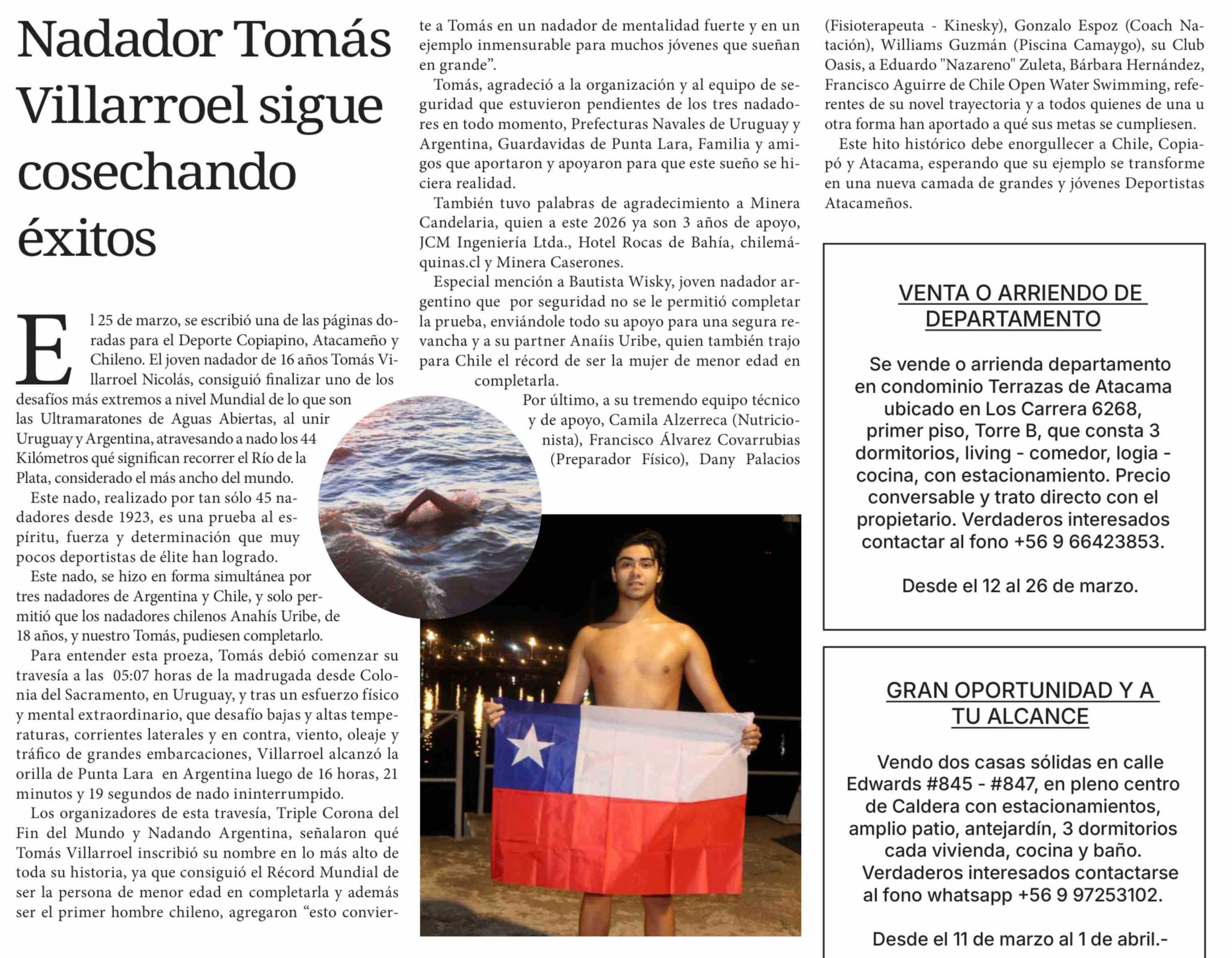 Nadador Tomás Villarroel sigue cosechando éxitos