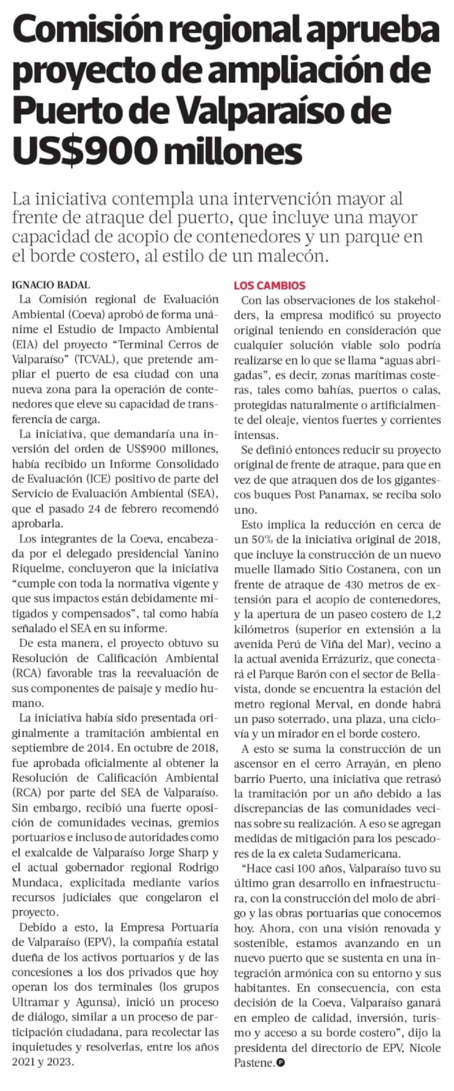 Comisión regional aprueba proyecto de ampliación de Puerto de Valparaíso de US$900 millones