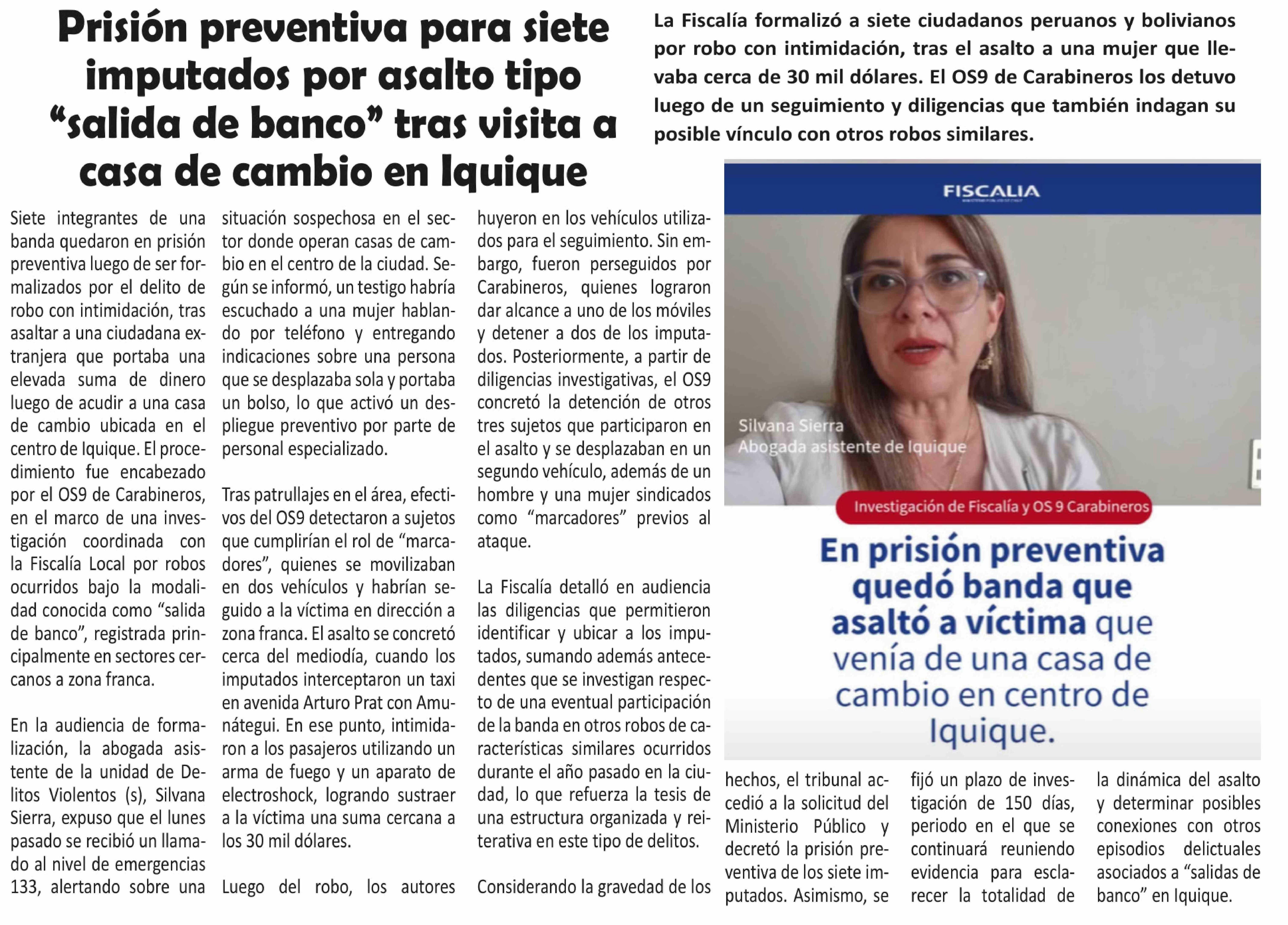 Prisión preventiva para siete imputados por asalto tipo "salida de banco" tras visita a casa de cambio en Iquique