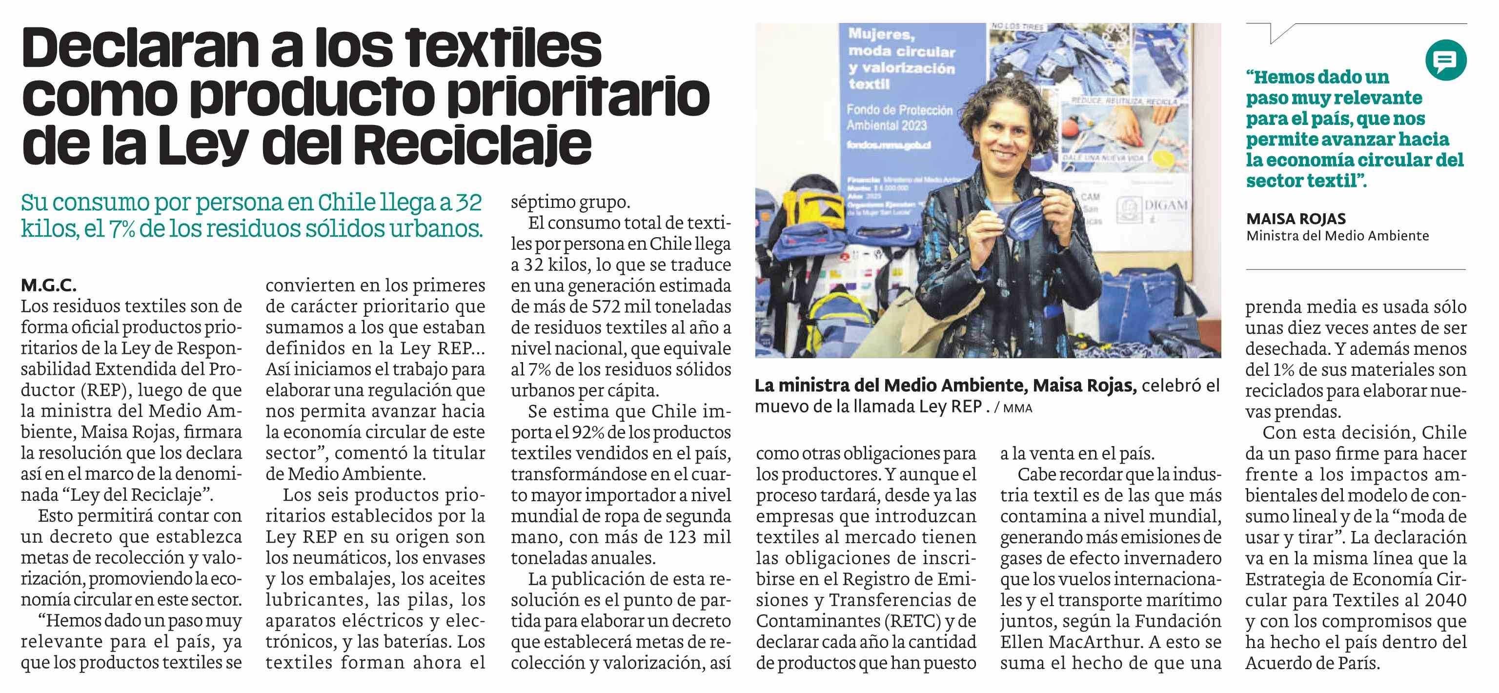 Declaran a los textiles como producto prioritario de la Ley del Reciclaje