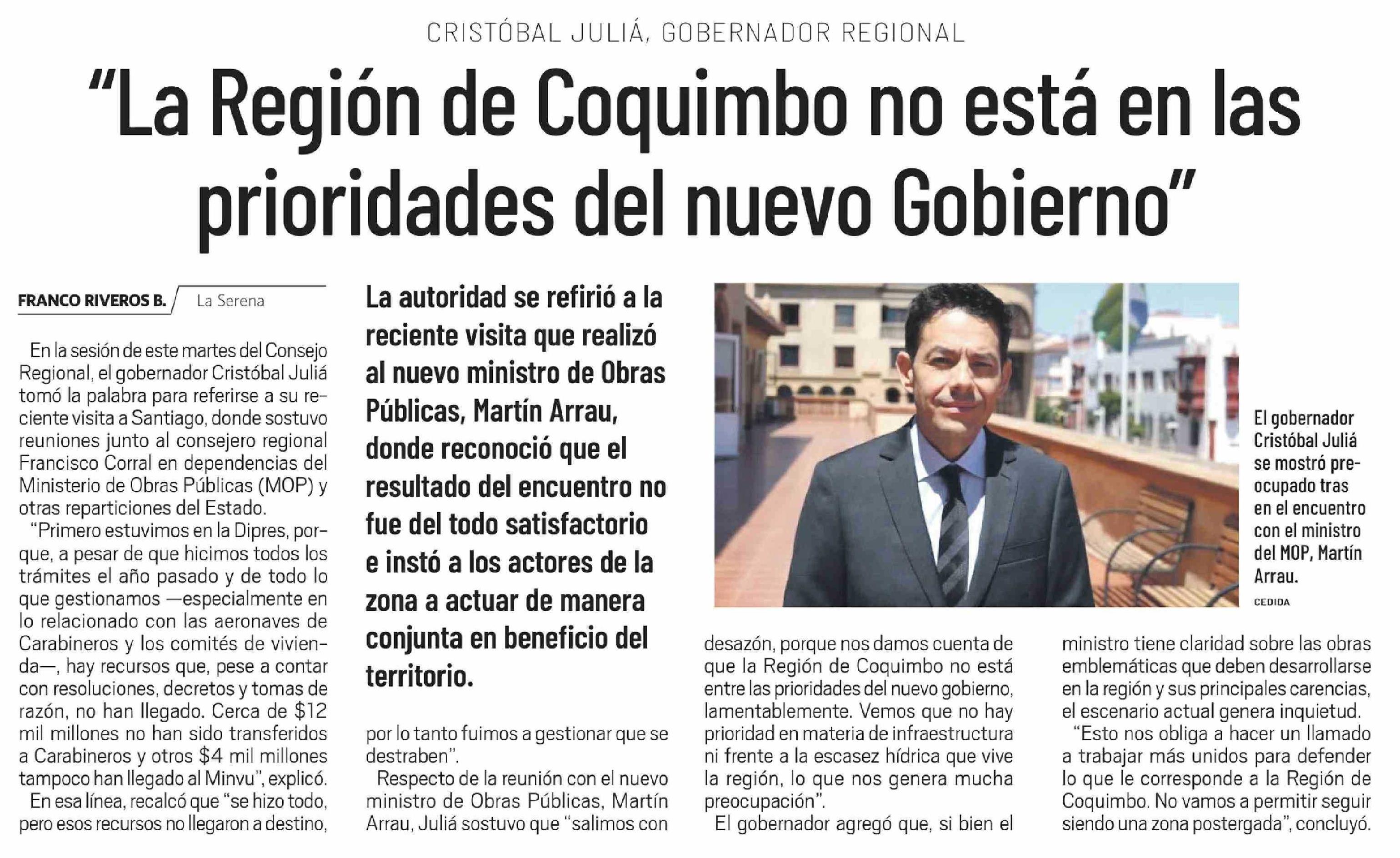 "La Región de Coquimbo no está en las prioridades del nuevo Gobierno"