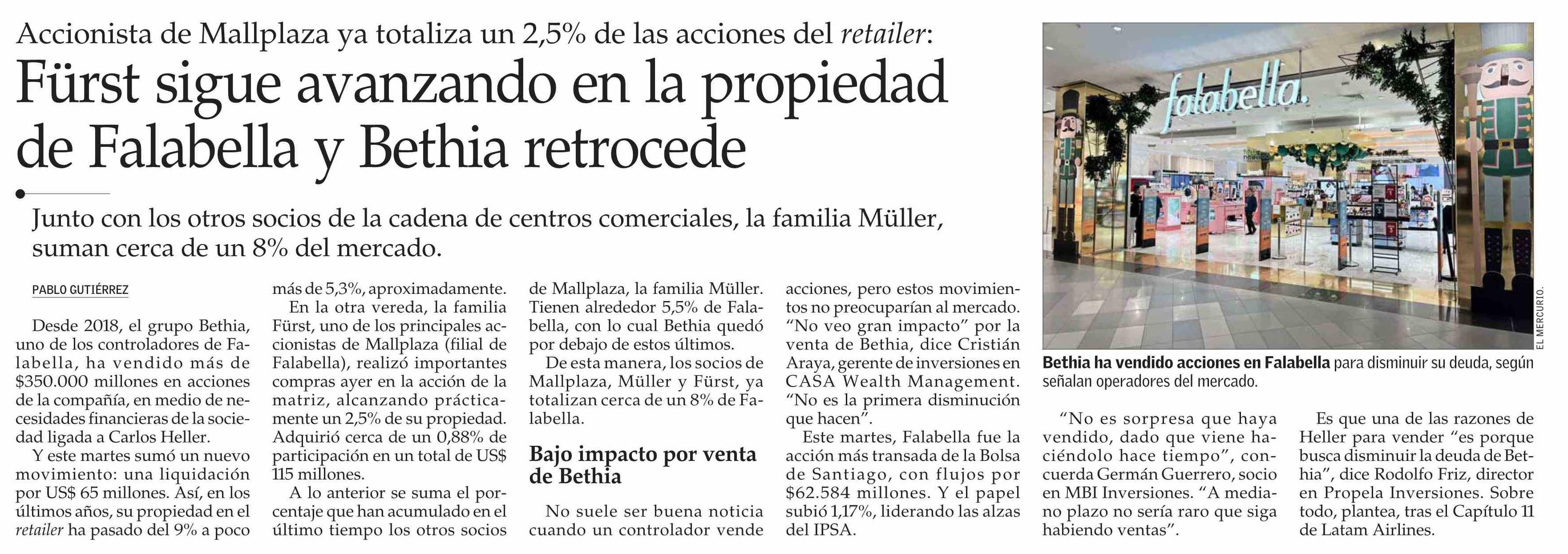 Fürst sigue avanzando en la propiedad de Falabella y Bethia retrocede