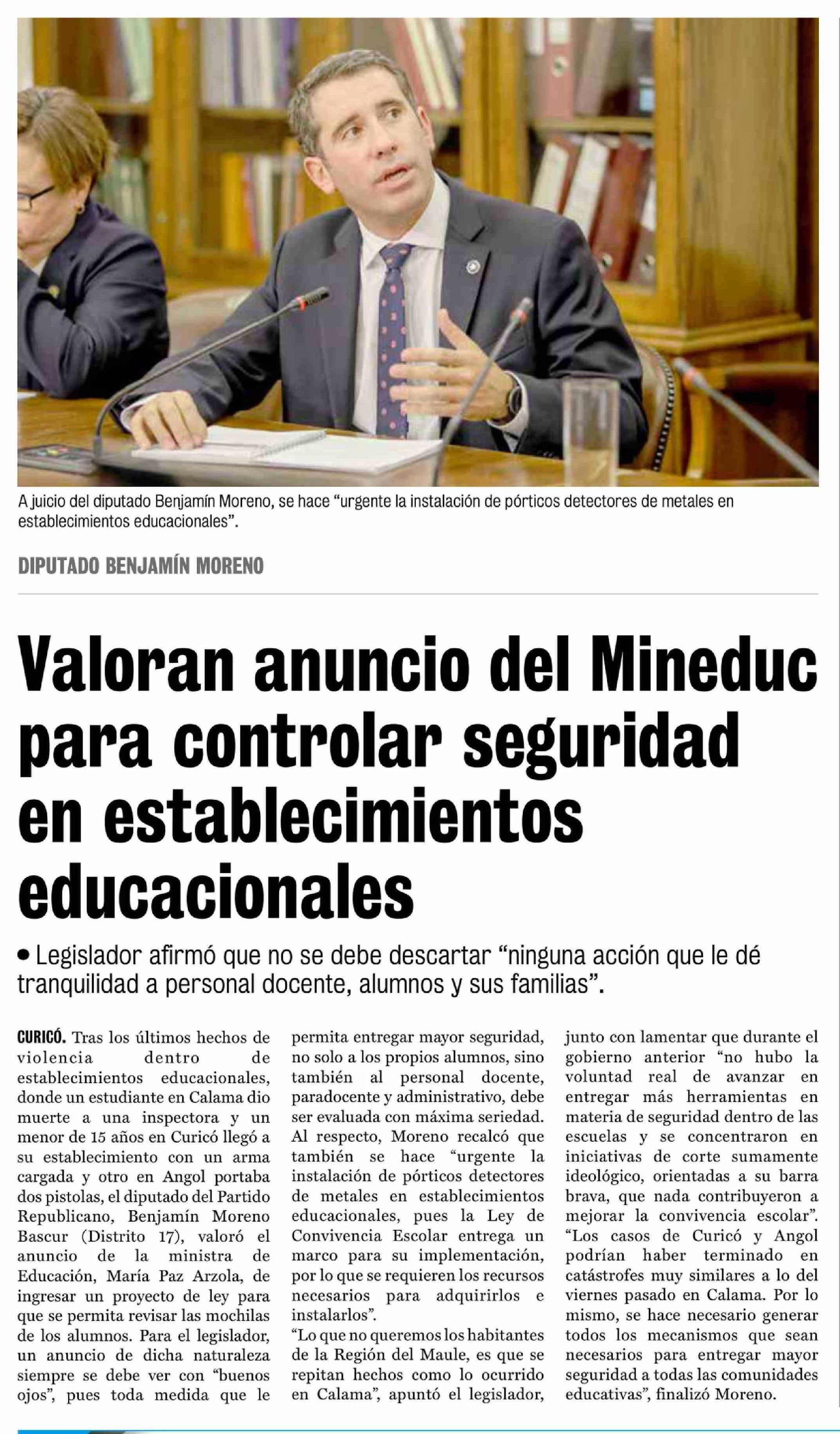 Valoran anuncio del Mineduc para controlar seguridad en establecimientos educacionales
