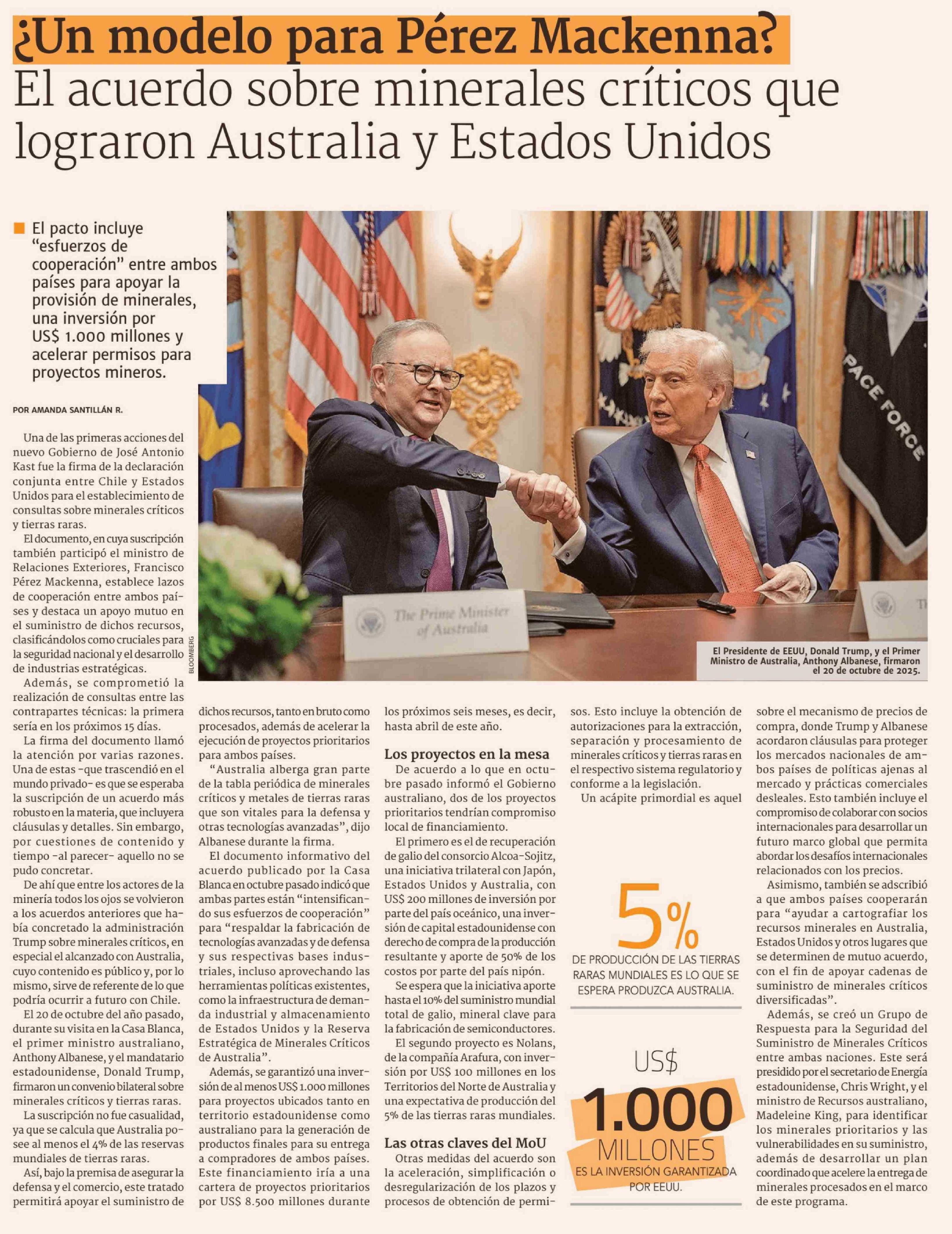 El acuerdo sobre minerales críticos que lograron Australia y Estados Unidos