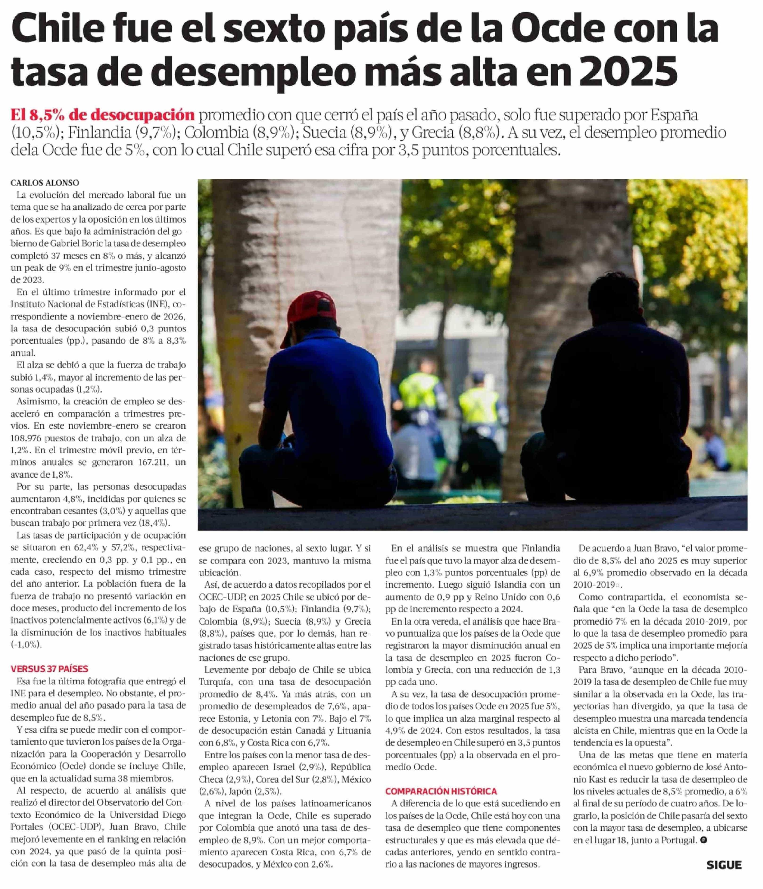 Chile fue el sexto país de la Ocde con la tasa de desempleo más alta en 2025