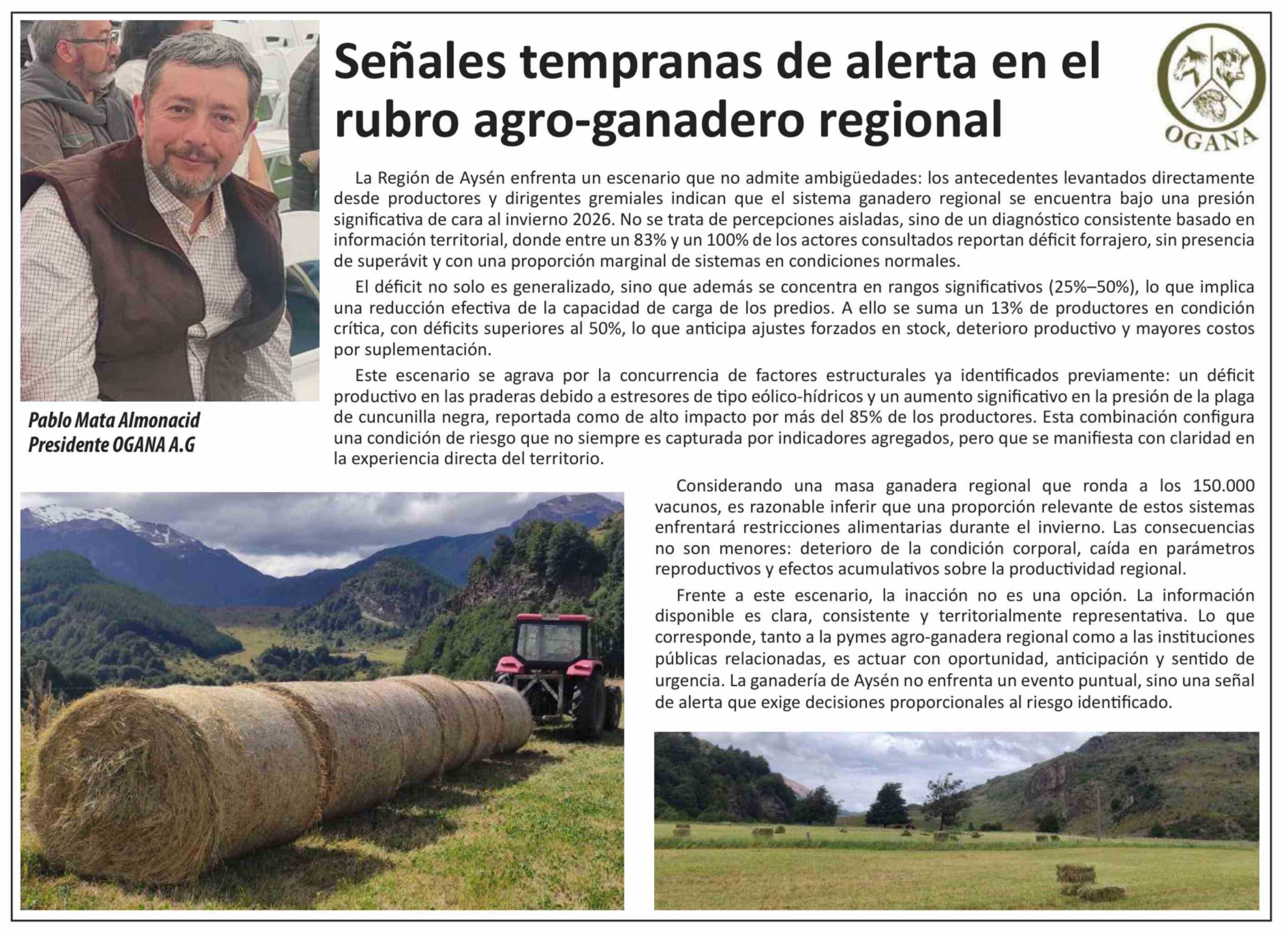 Señales tempranas de alerta en el rubro agro-ganadero regional