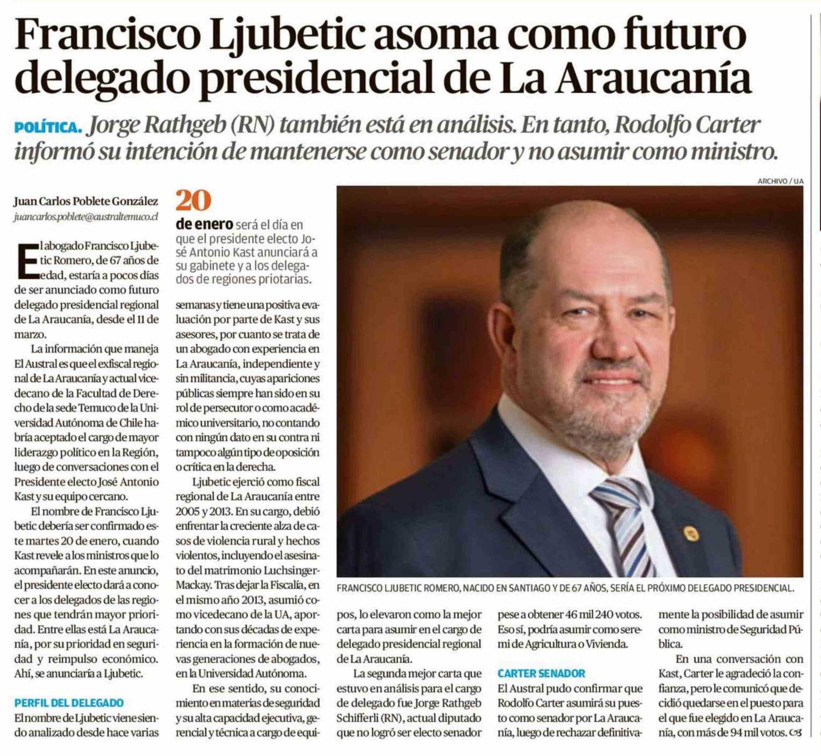 Francisco Ljubetic asoma como futuro delegado presidencial de La Araucanía