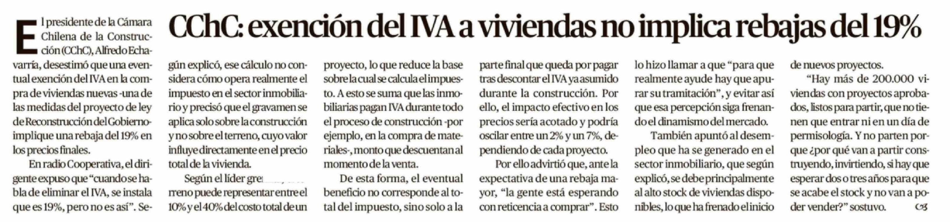 CChC: exención del IVA a viviendas no implica rebajas del 19%