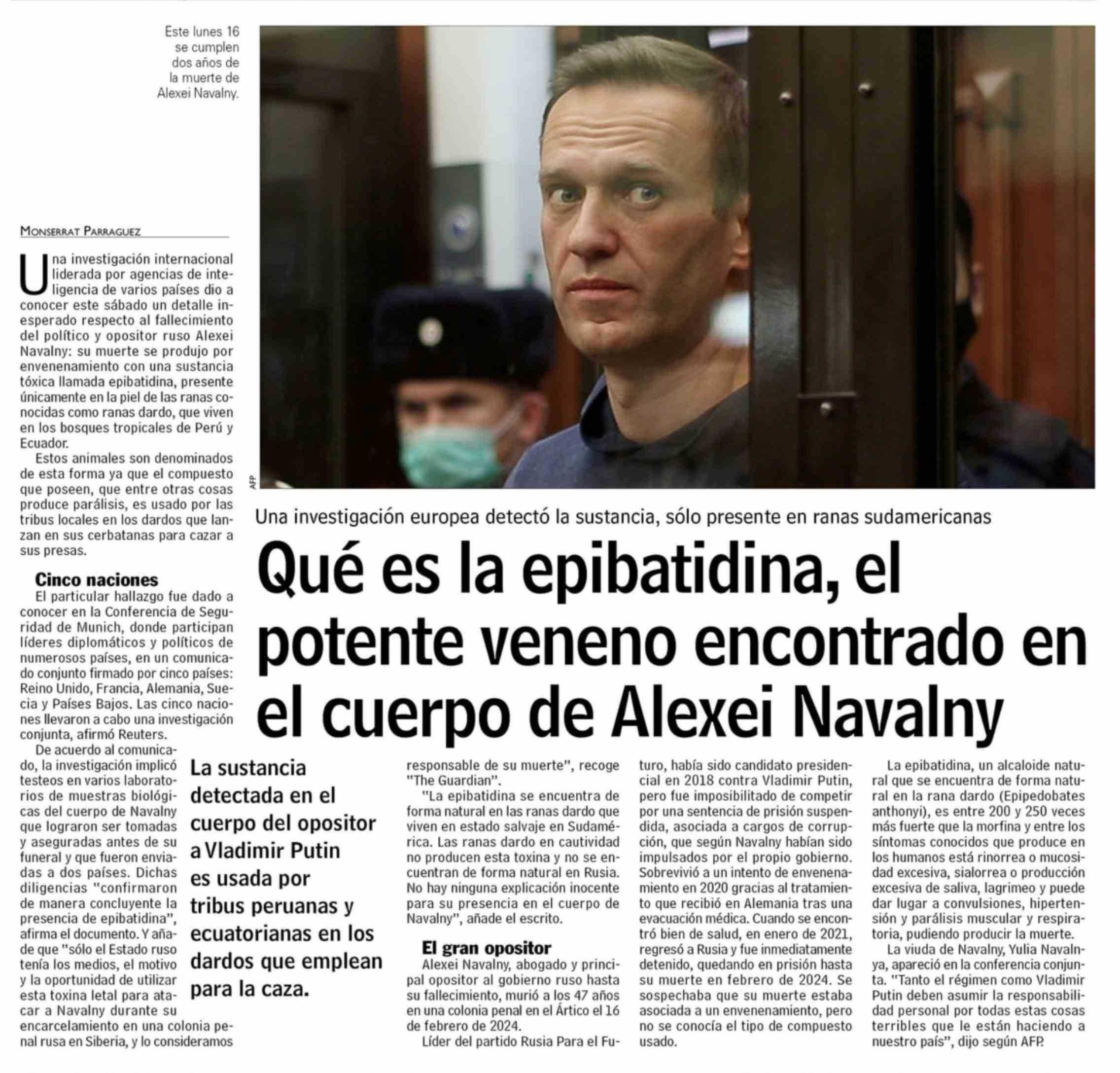 Qué es la epibatidina, el potente veneno encontrado en el cuerpo de Alexei Navalny