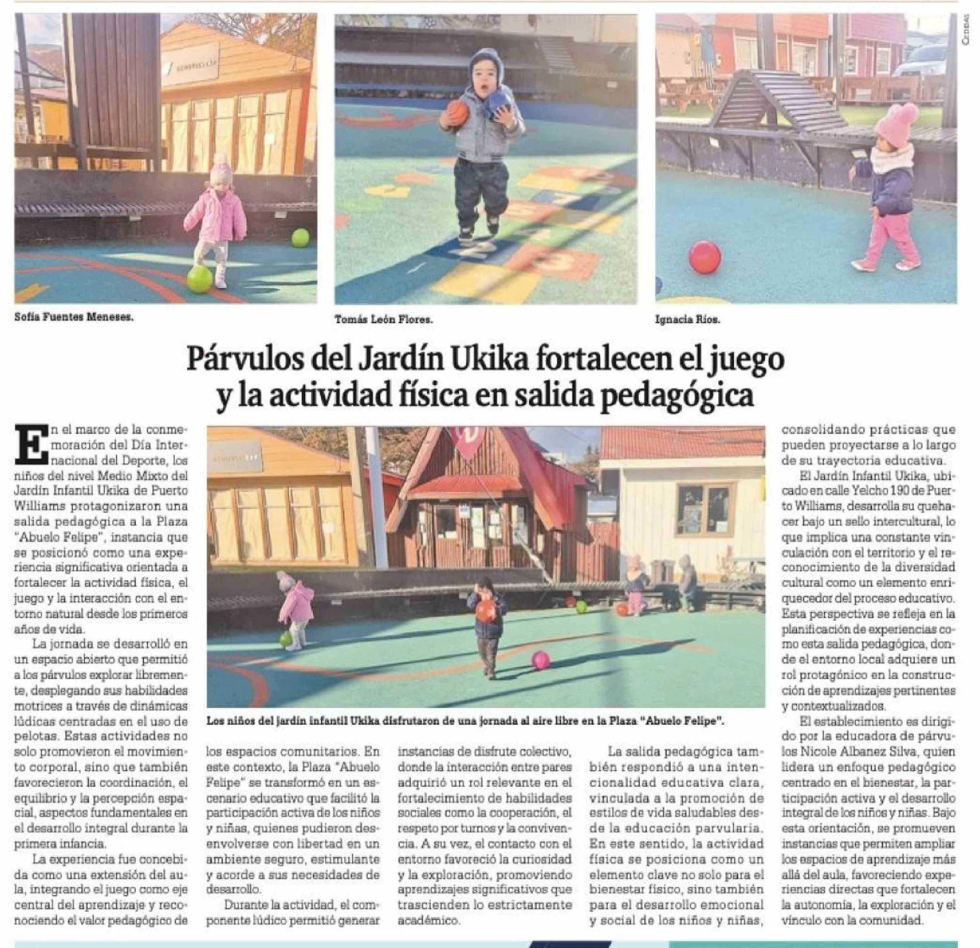 Párvulos del Jardín Ukika fortalecen el juego y la actividad física en salida pedagógica