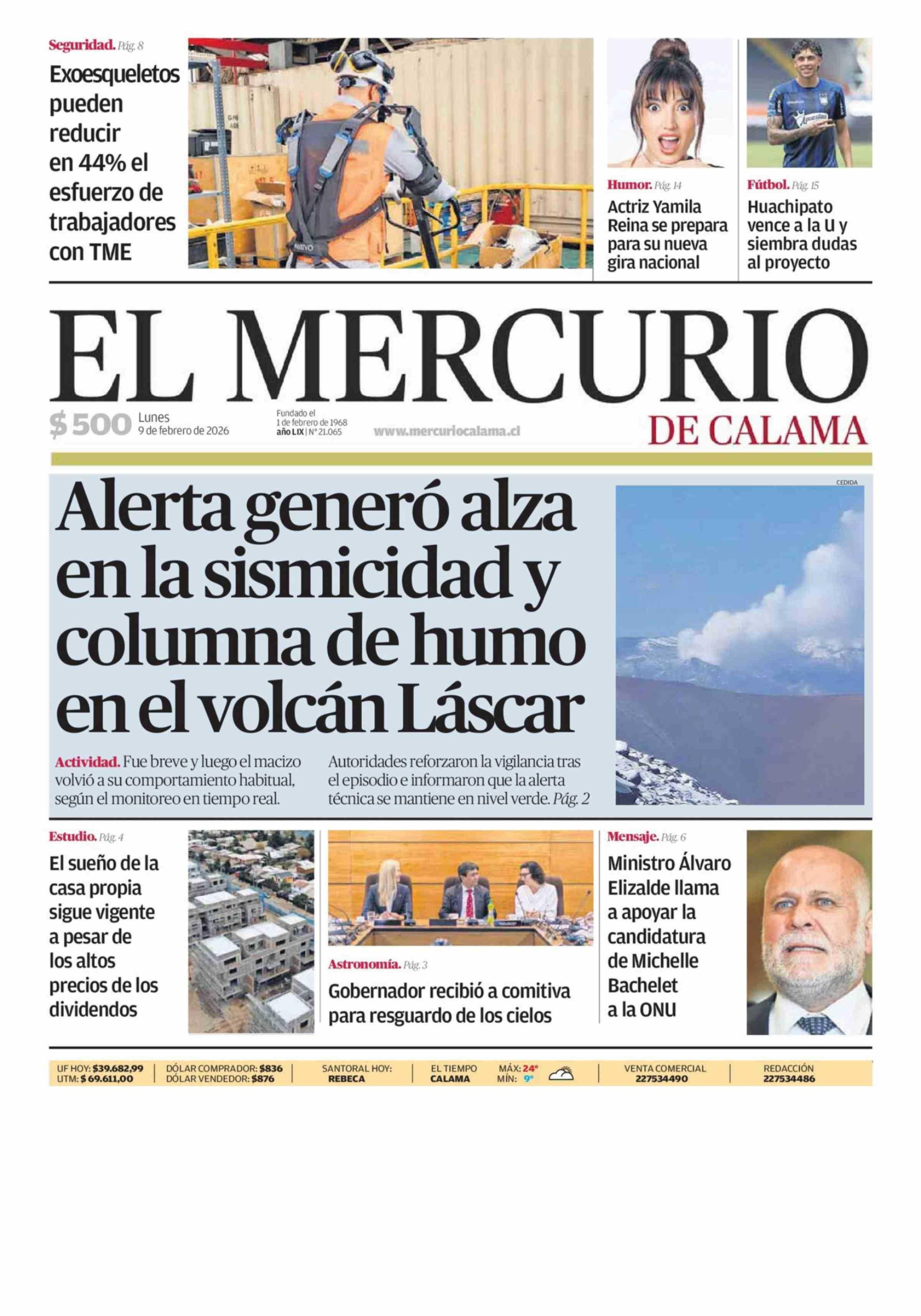 PORTADA EL MERCURIO DE CALAMA CHILE