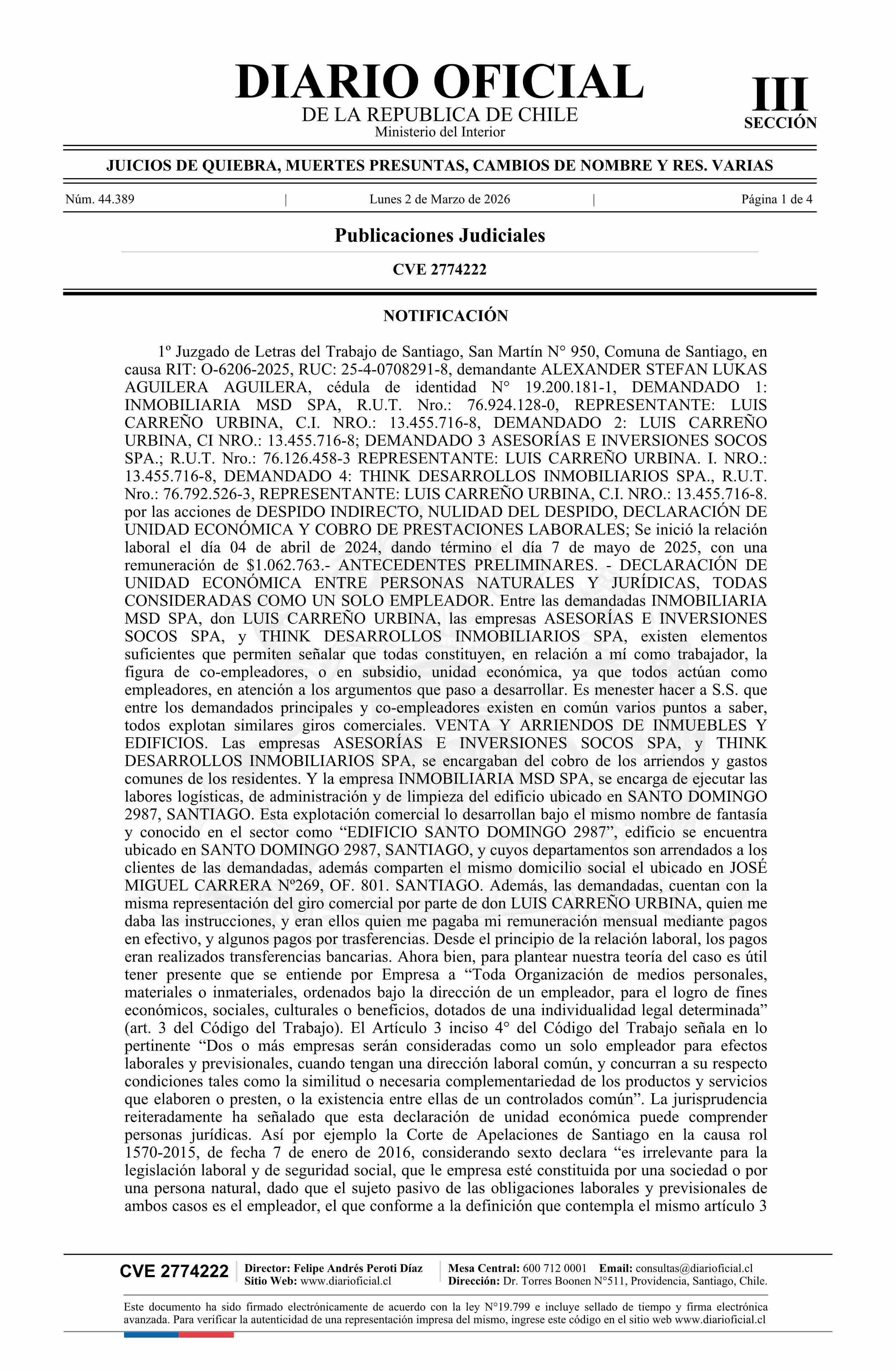 Diario Oficial Edición Electrónica (Diario Oficial de Chile - 3 Public. Judiciales)