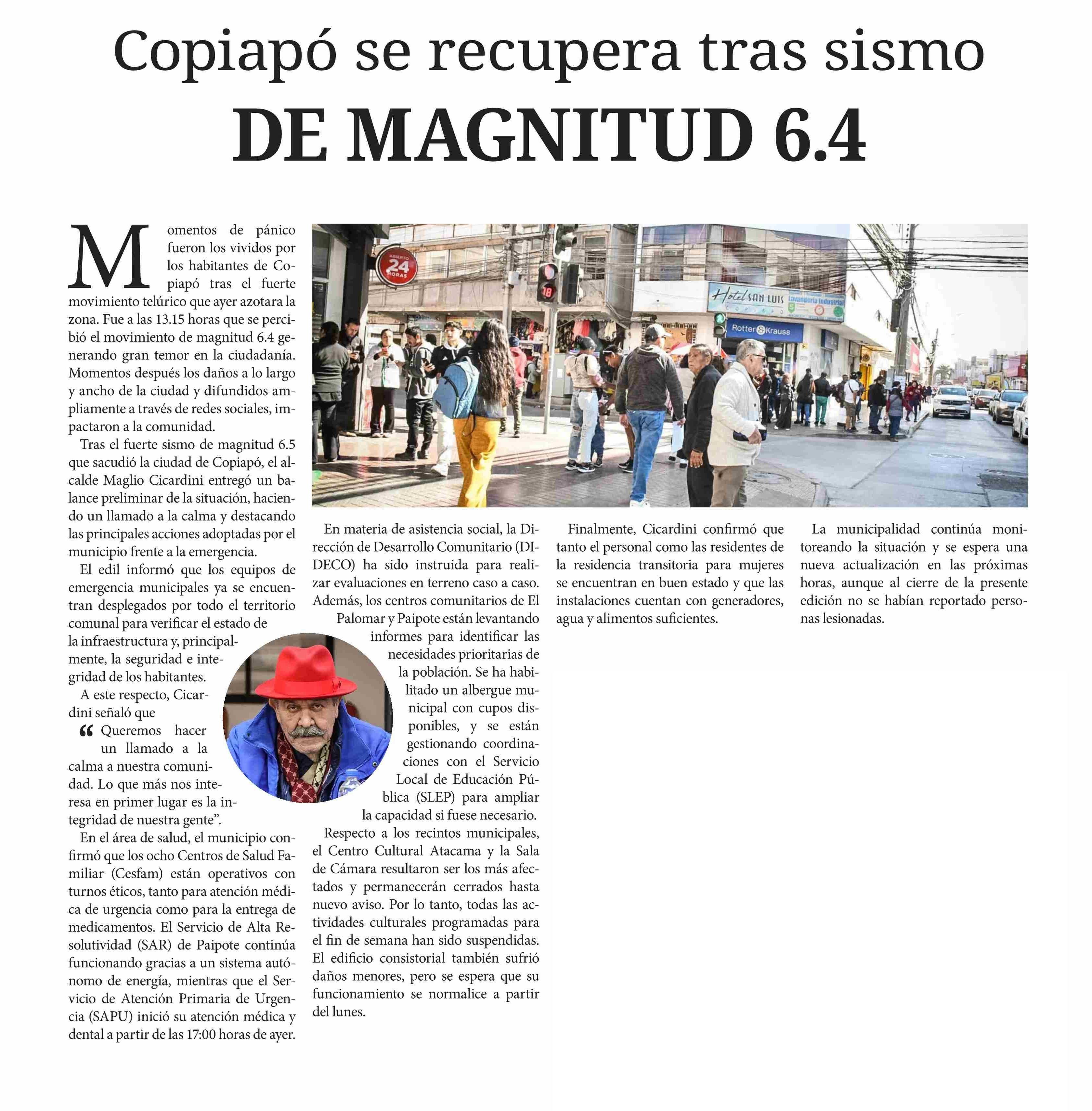 Copiapó se recupera tras sismo DE MAGNITUD 6.4