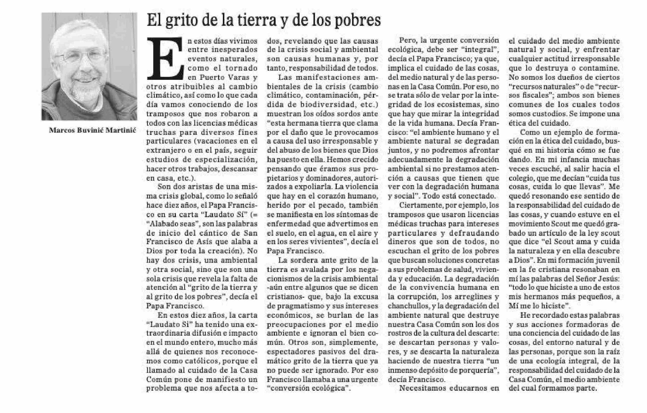 COLUMNAS DE OPINIÓN: El grito de la tierra y de los pobres
