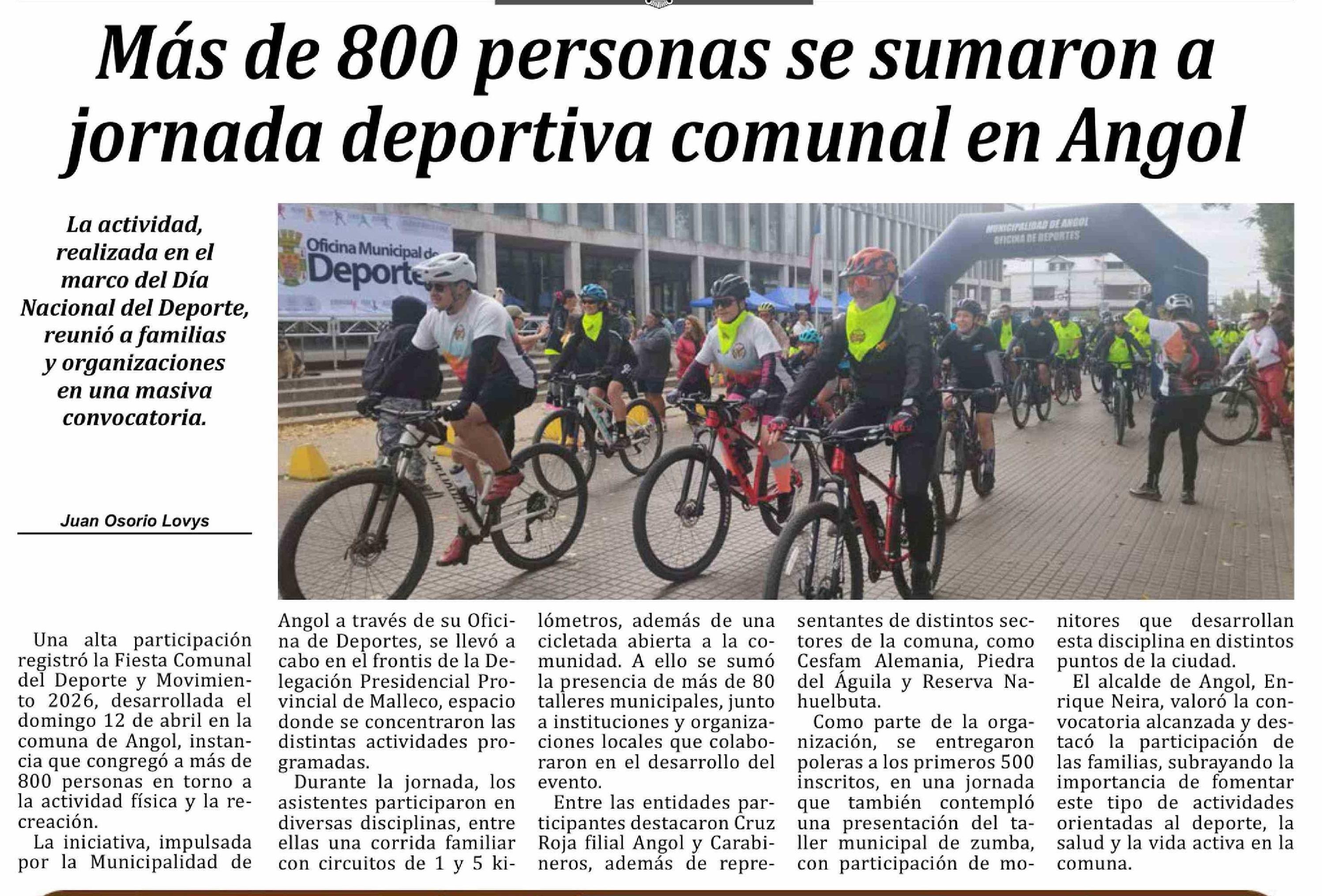 Más de 800 personas se sumaron a jornada deportiva comunal en Angol