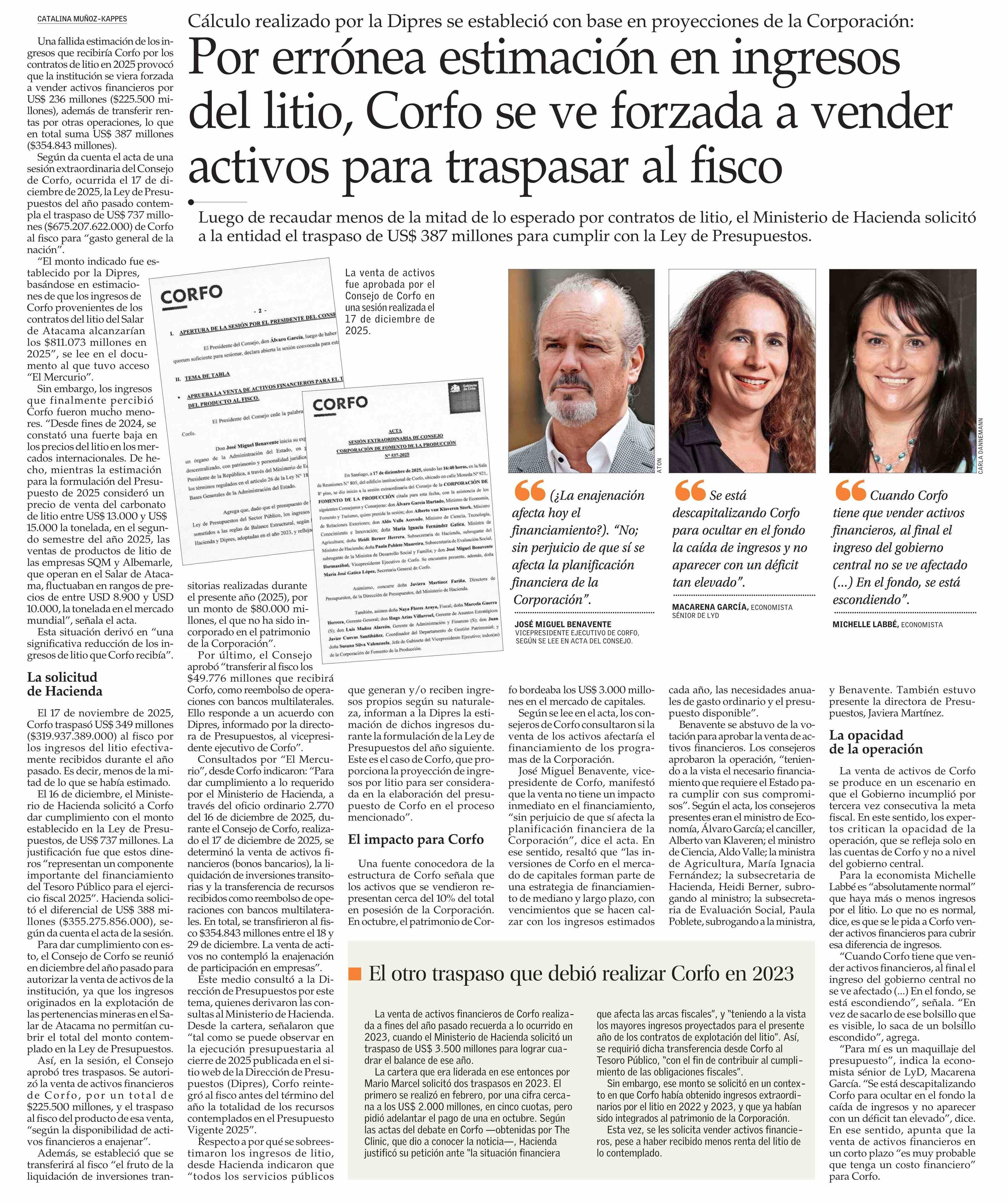 Por errónea estimación en ingresos del litio, Corfo se ve forzada a vender activos para traspasar al fisco