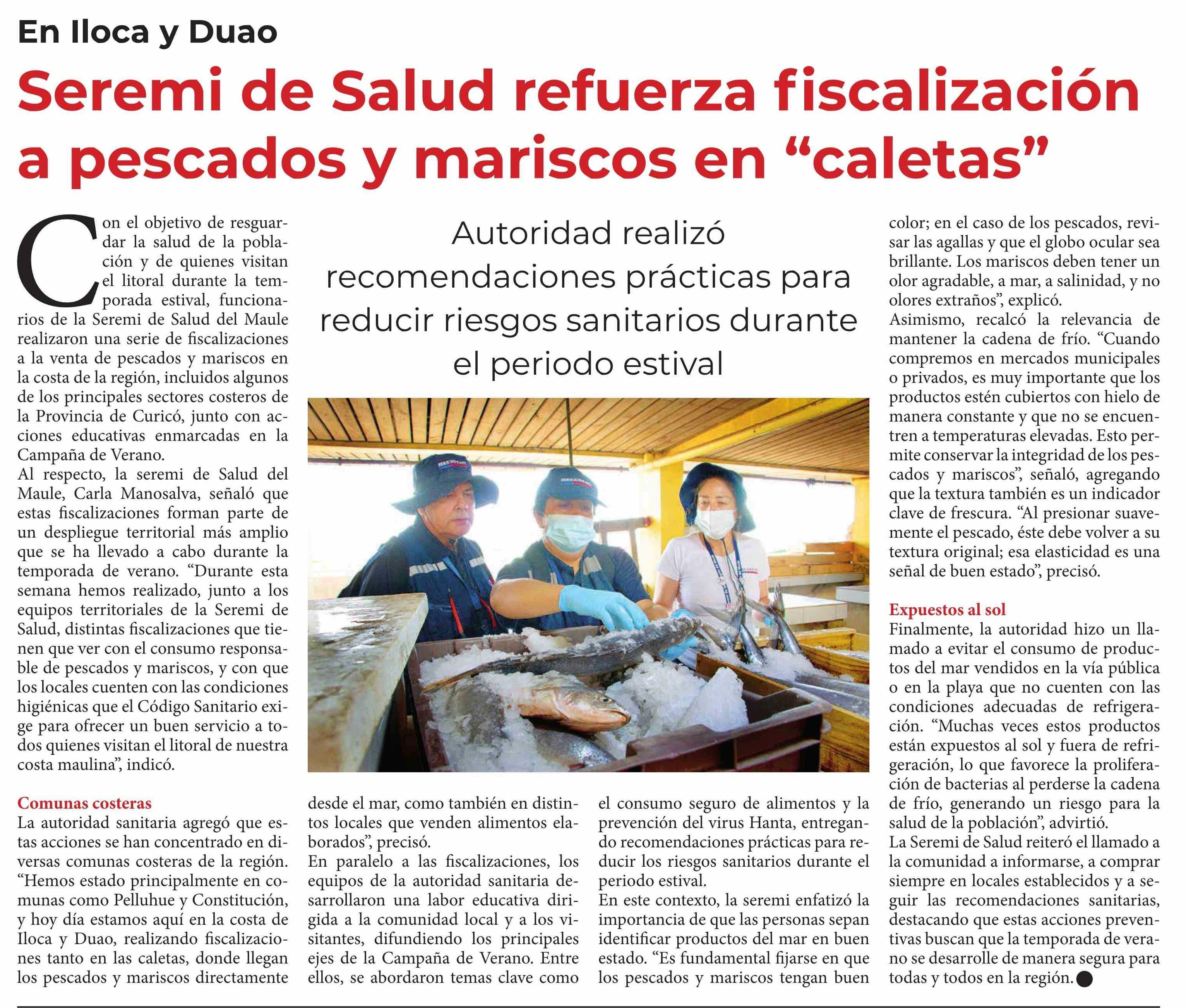 Seremi de Salud refuerza fiscalización a pescados y mariscos en "caletas"