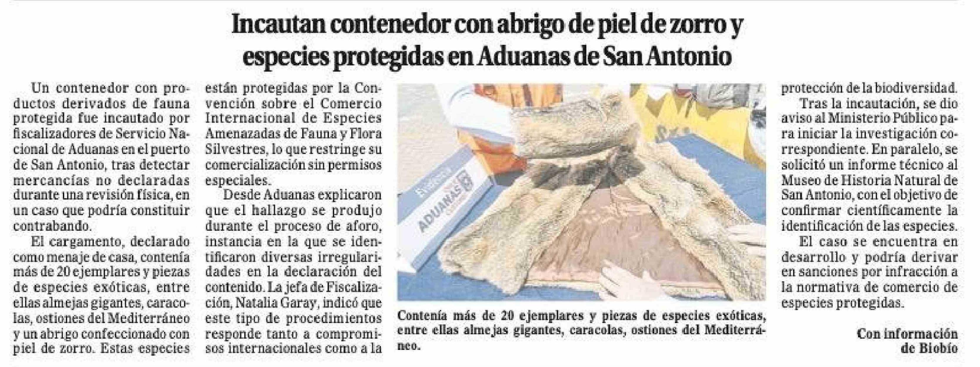 Incautan contenedor con abrigo de piel de zorro y especies protegidas en Aduanas de San Antonio