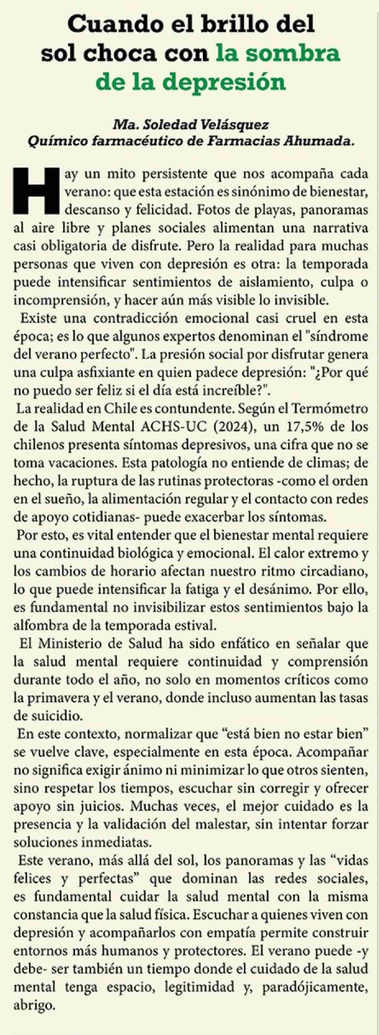 Columnas de Opinión: Cuando el brillo del sol choca con la sombra de la depresión