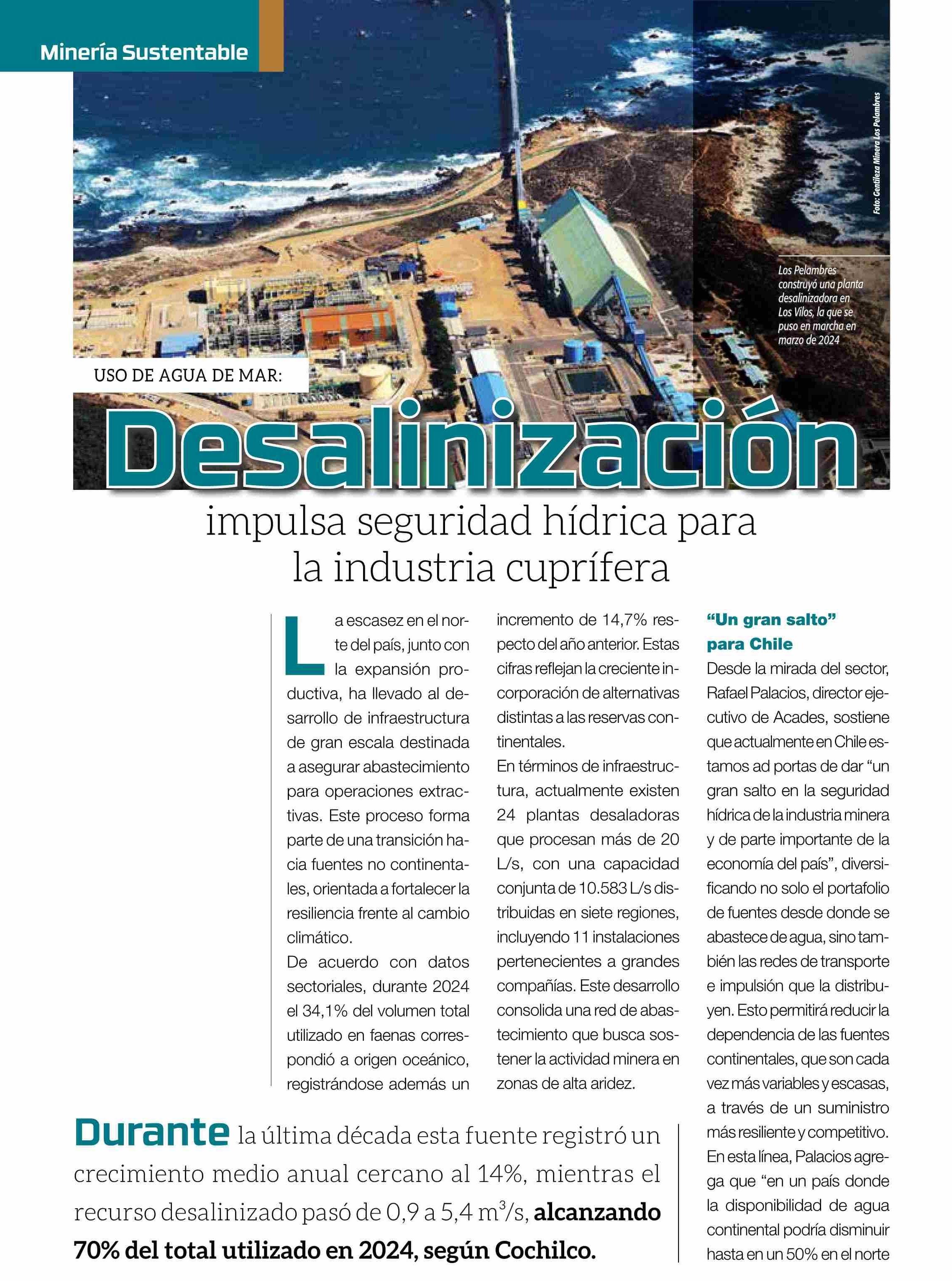 Desalinización impulsa seguridad hídrica para la industria cuprifera