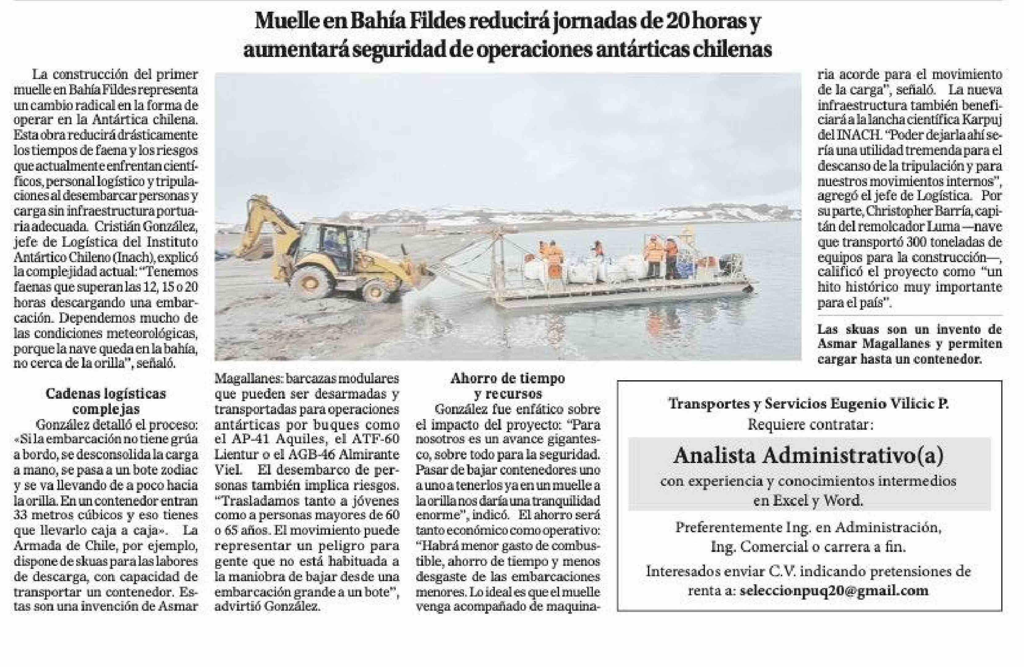 Muelle en Bahía Fildes reducirá jornadas de 20 horas y aumentará seguridad de operaciones antárticas chilenas