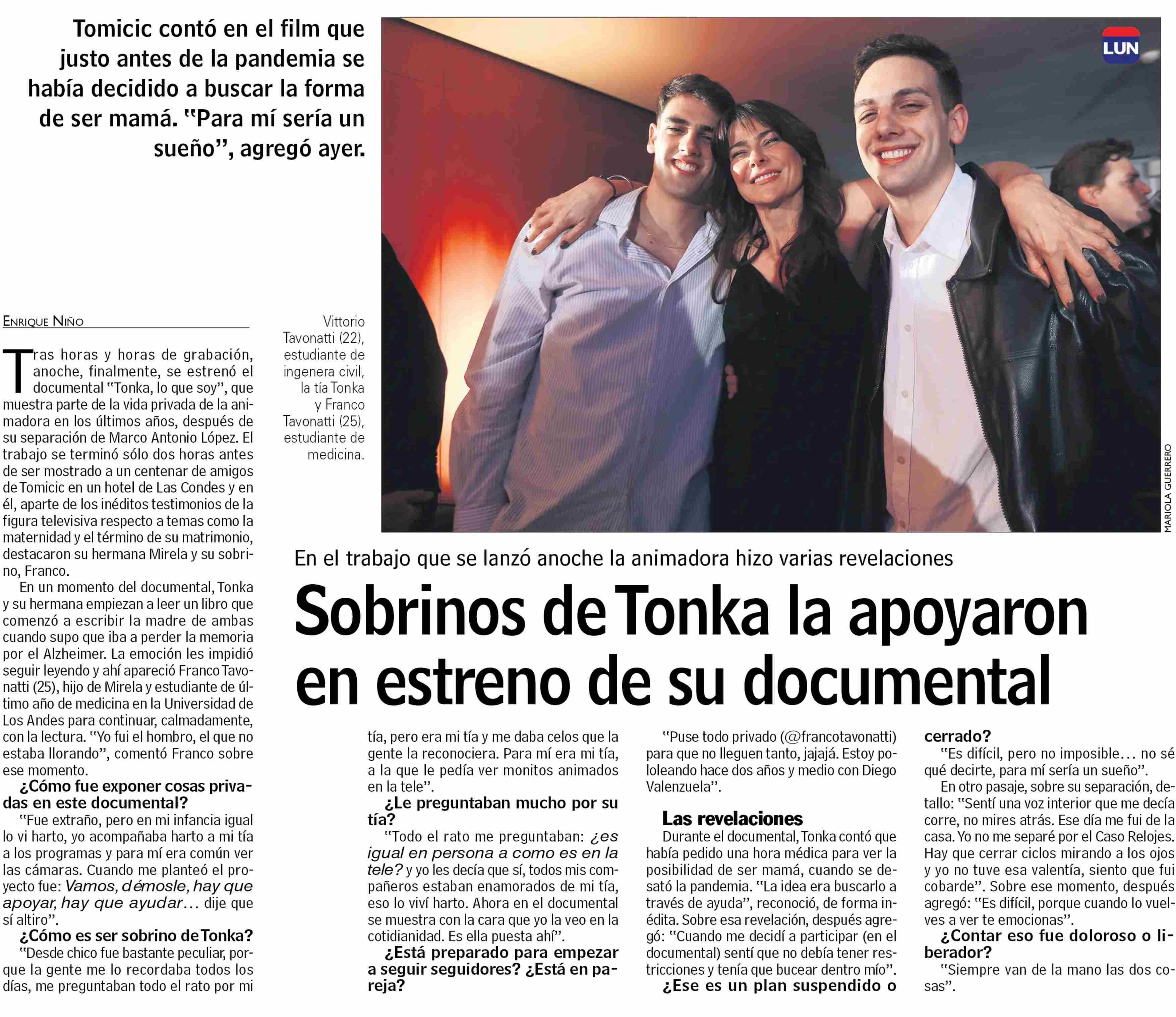 Sobrinos deTonka la apoyaron en estreno de su documental
