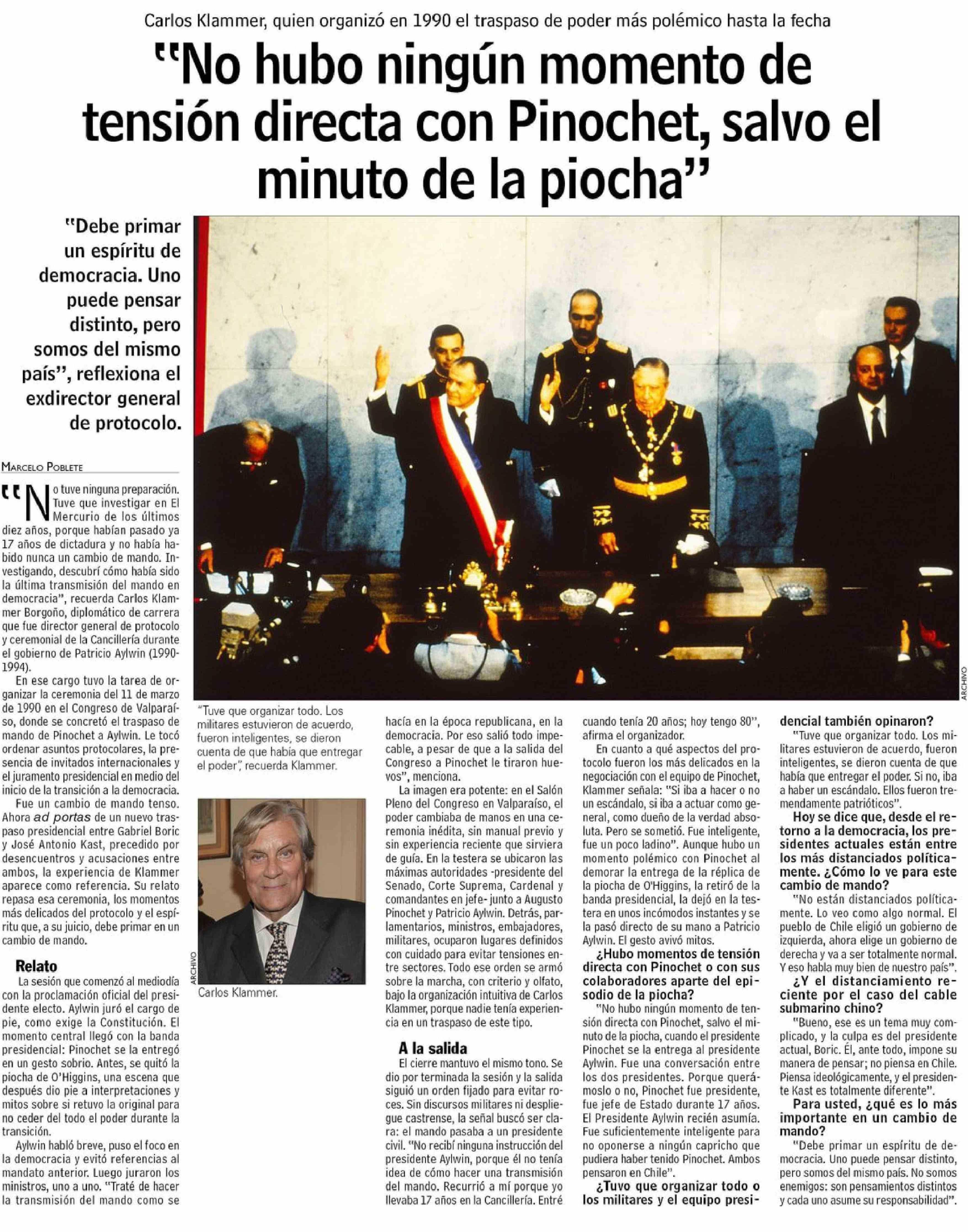 "No hubo ningún momento de tensión directa con Pinochet, salvo el minuto de la piocha"