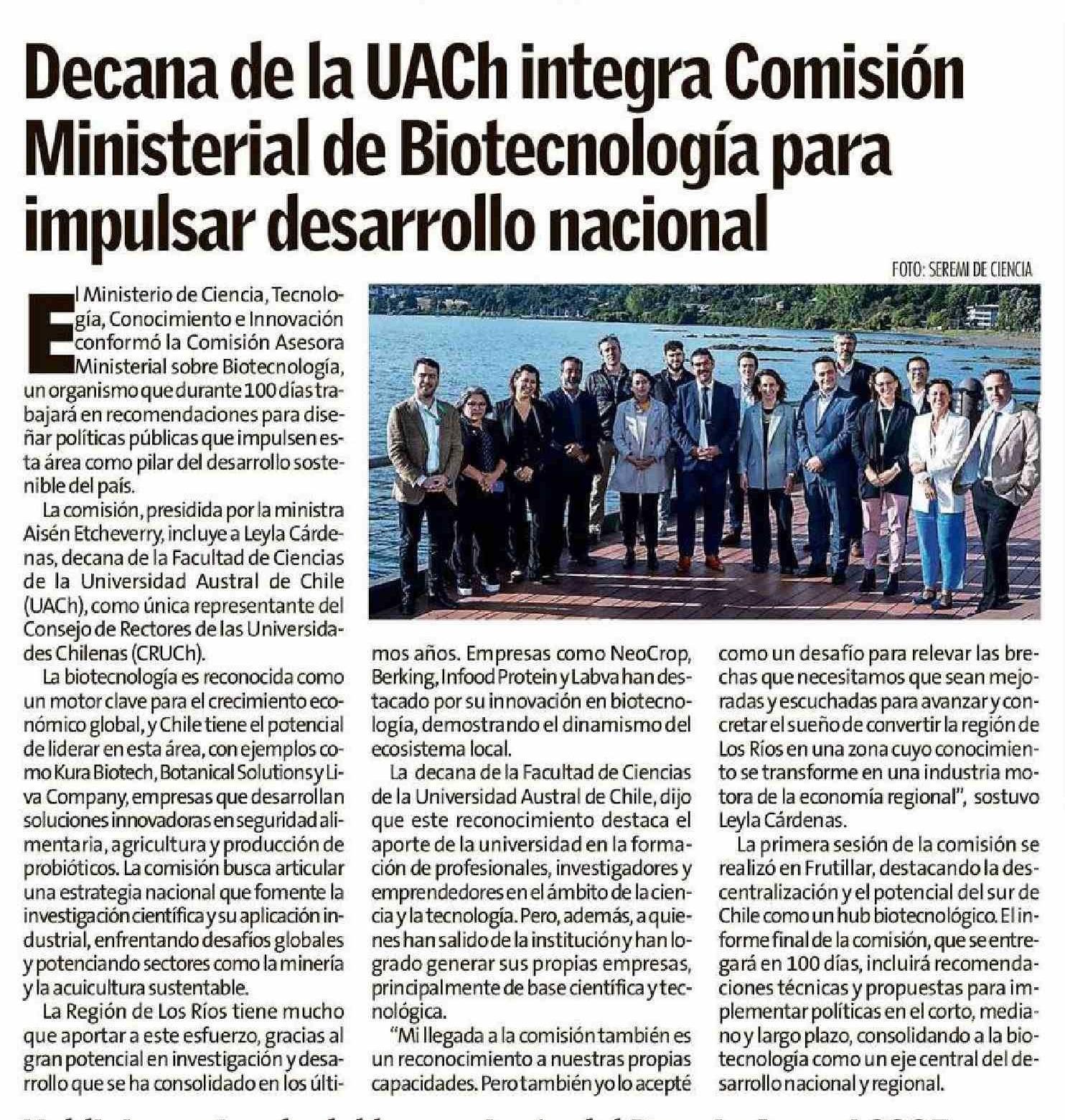 Decana de la UACh integra Comisión Ministerial de Biotecnología para impulsar desarrollo nacional
