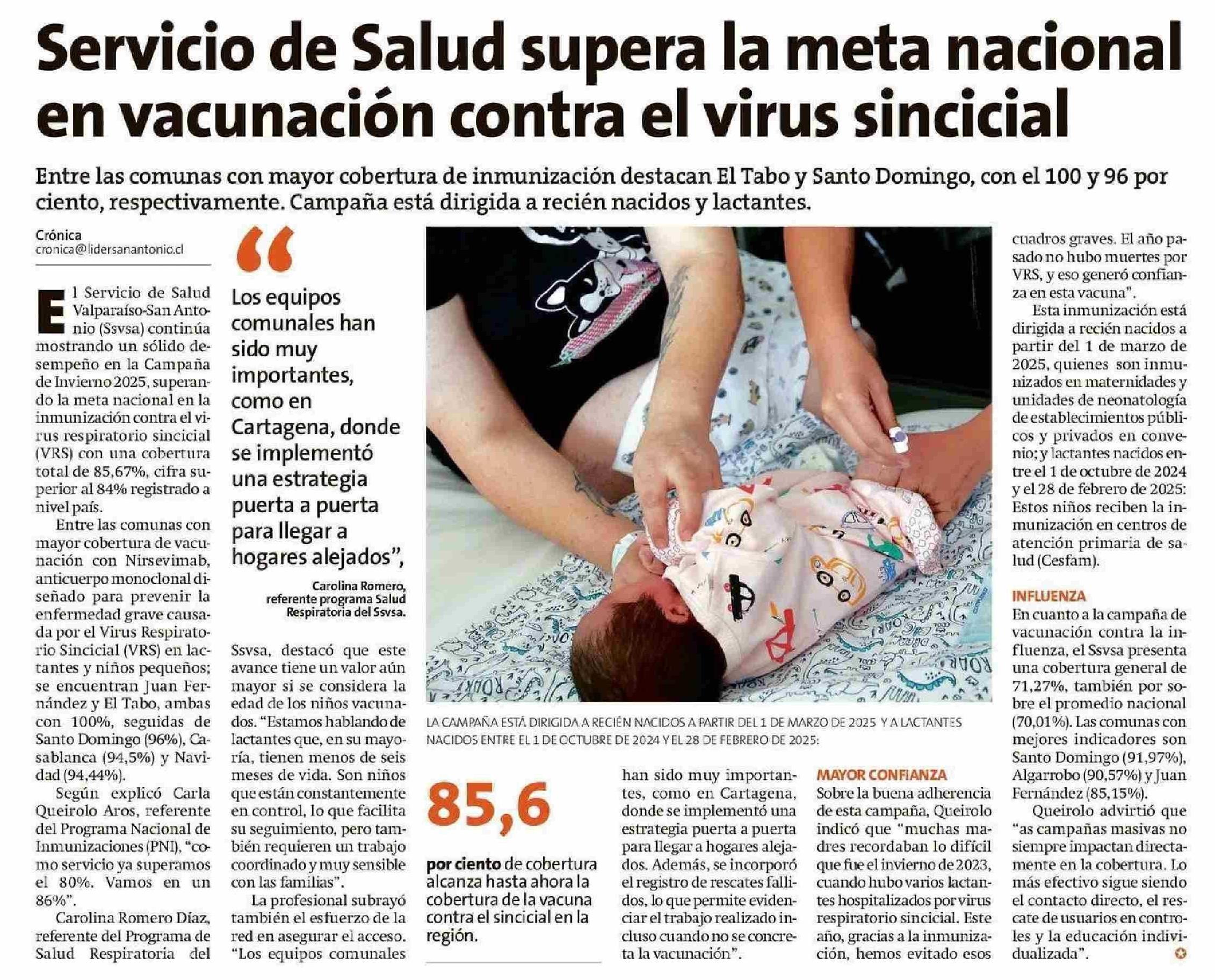 Servicio de Salud supera la meta nacional vacunacion contra el virus sincicial