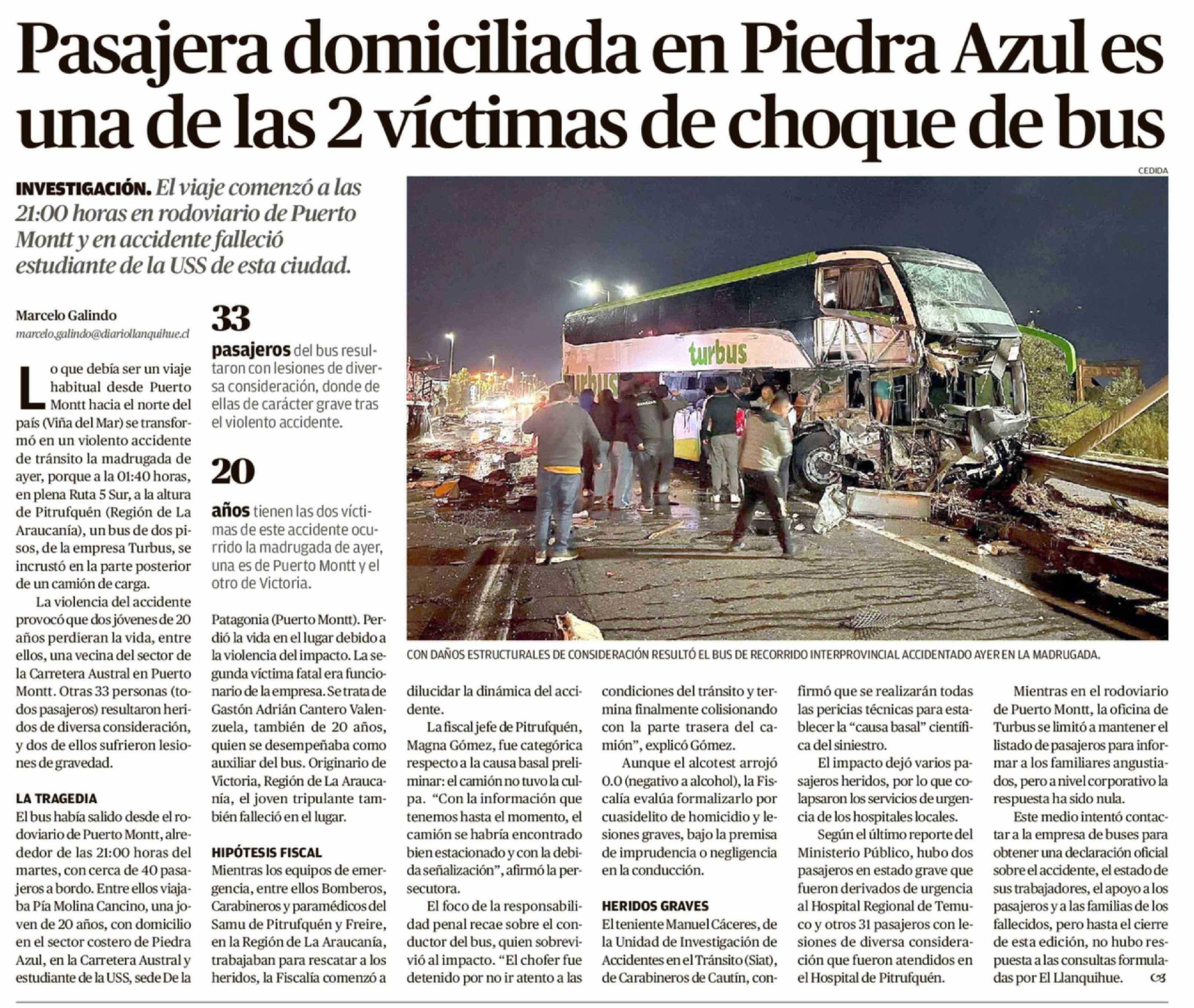 Pasajera domiciliada en Piedra Azul es una de las 2 víctimas de choque de bus