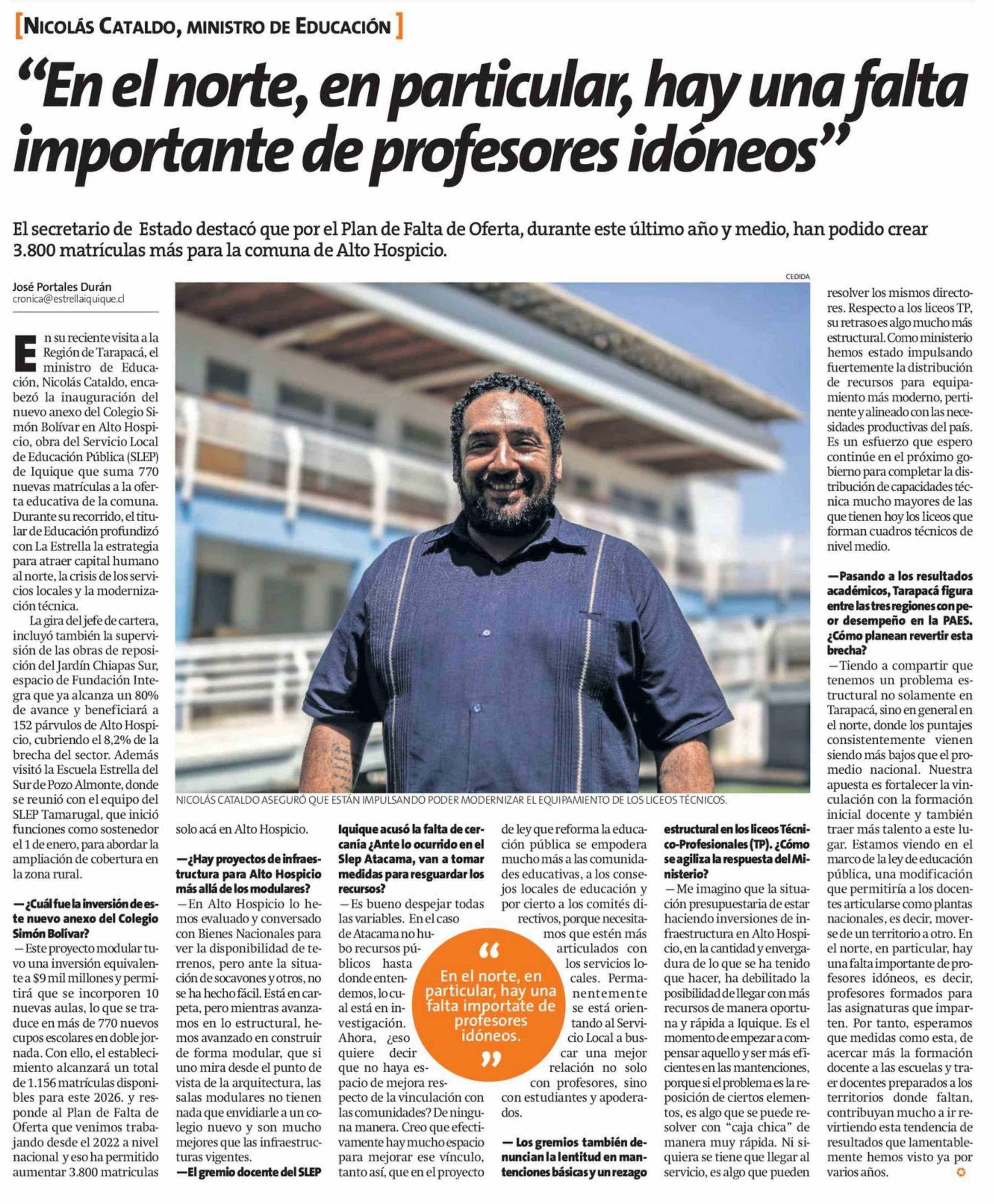 Importante de profesores idóneos' "En el norte, en particular, hay una falta