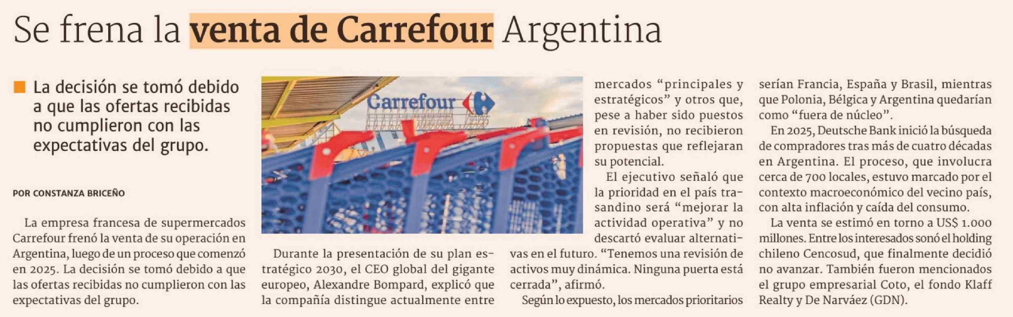 Se frena la venta de Carrefour Argentina