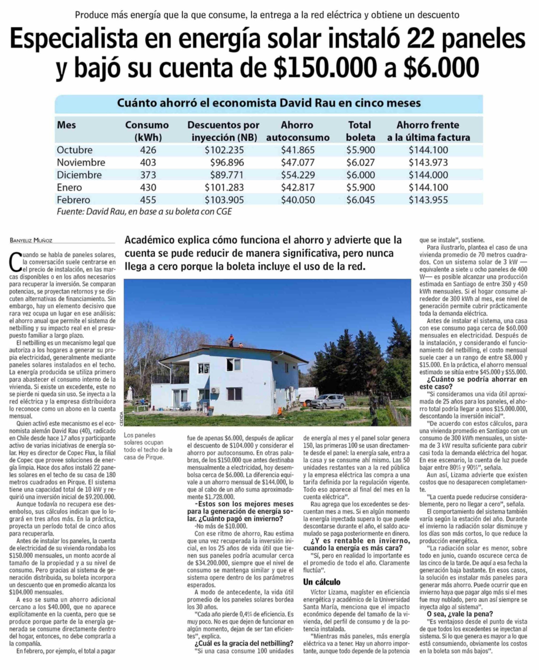 Especialista en energía solar instaló 22 paneles y bajó su cuenta de $150.000 a $6.000
