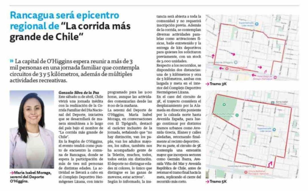 Título: Rancagua será epicentro regional de "La corrida más grande de Chile"