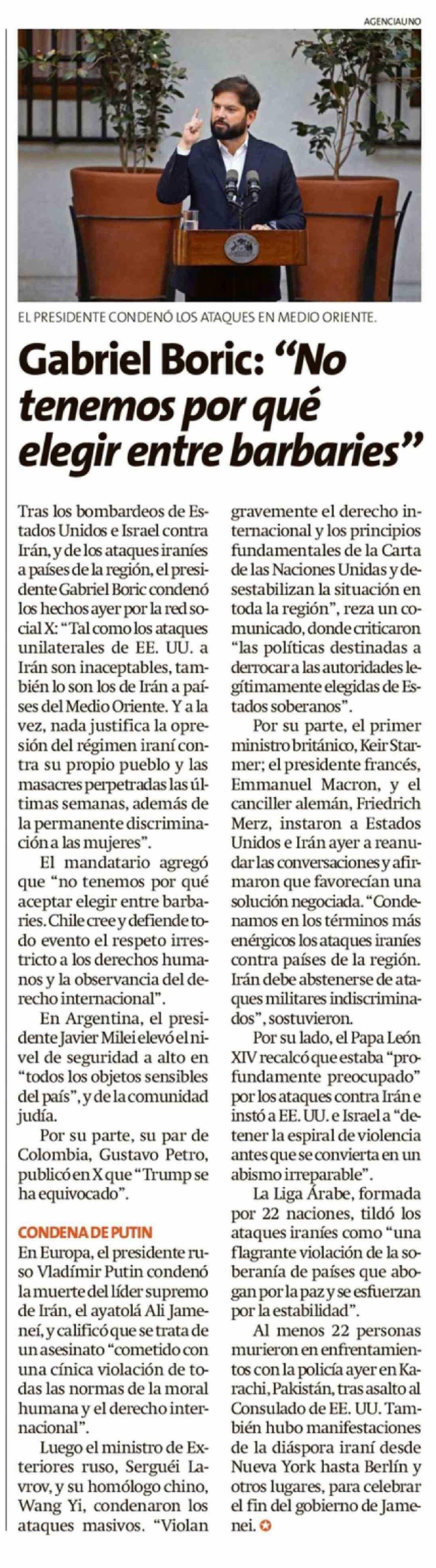 Gabriel Boric: "No tenemos por qué elegir entre barbaries"
