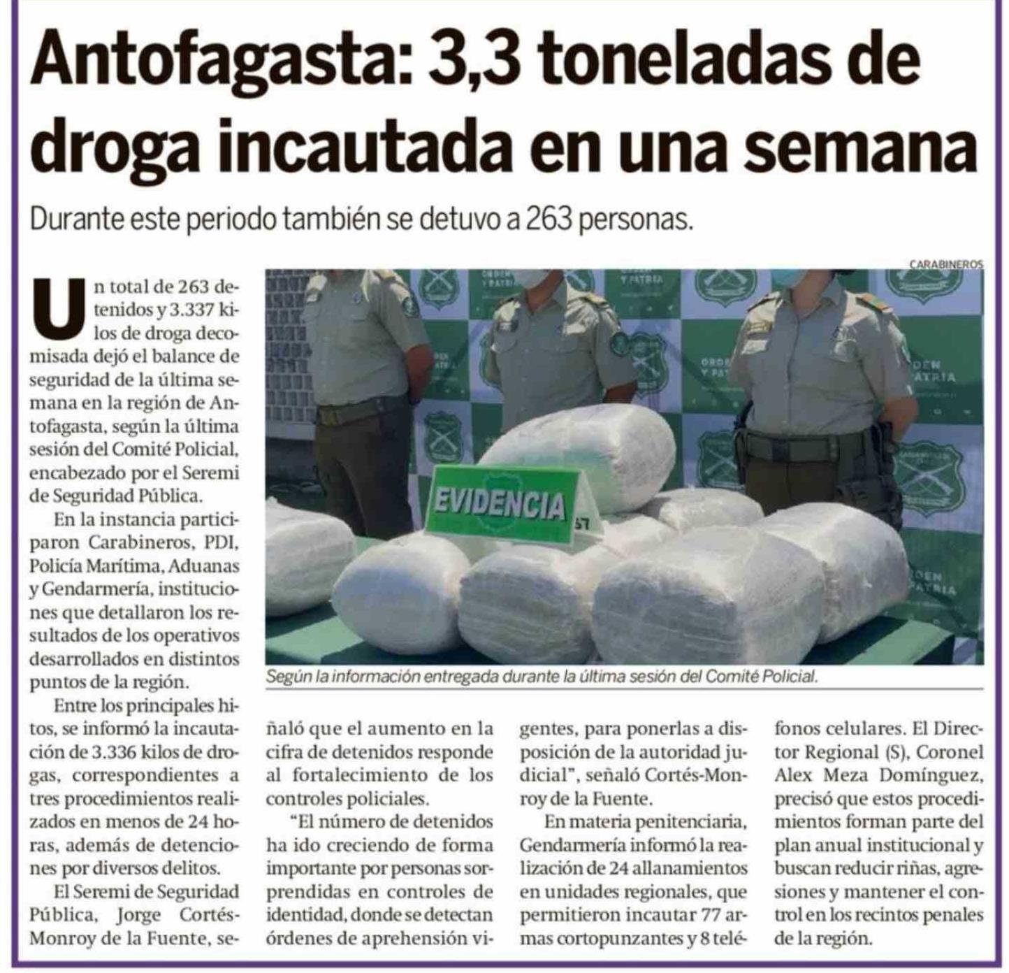 Antofagasta: 3,3 toneladas de droga incautada en una semana