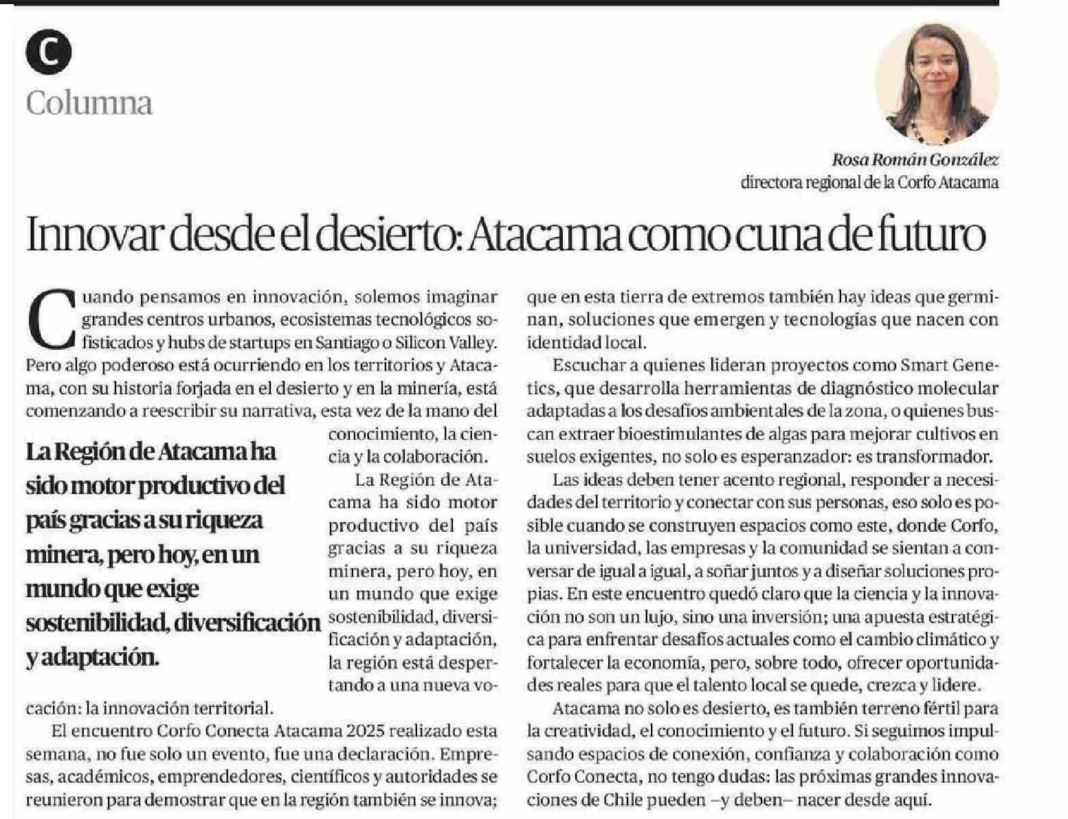COLUMNAS DE OPINIÓN: Atacama como cuna de futuro