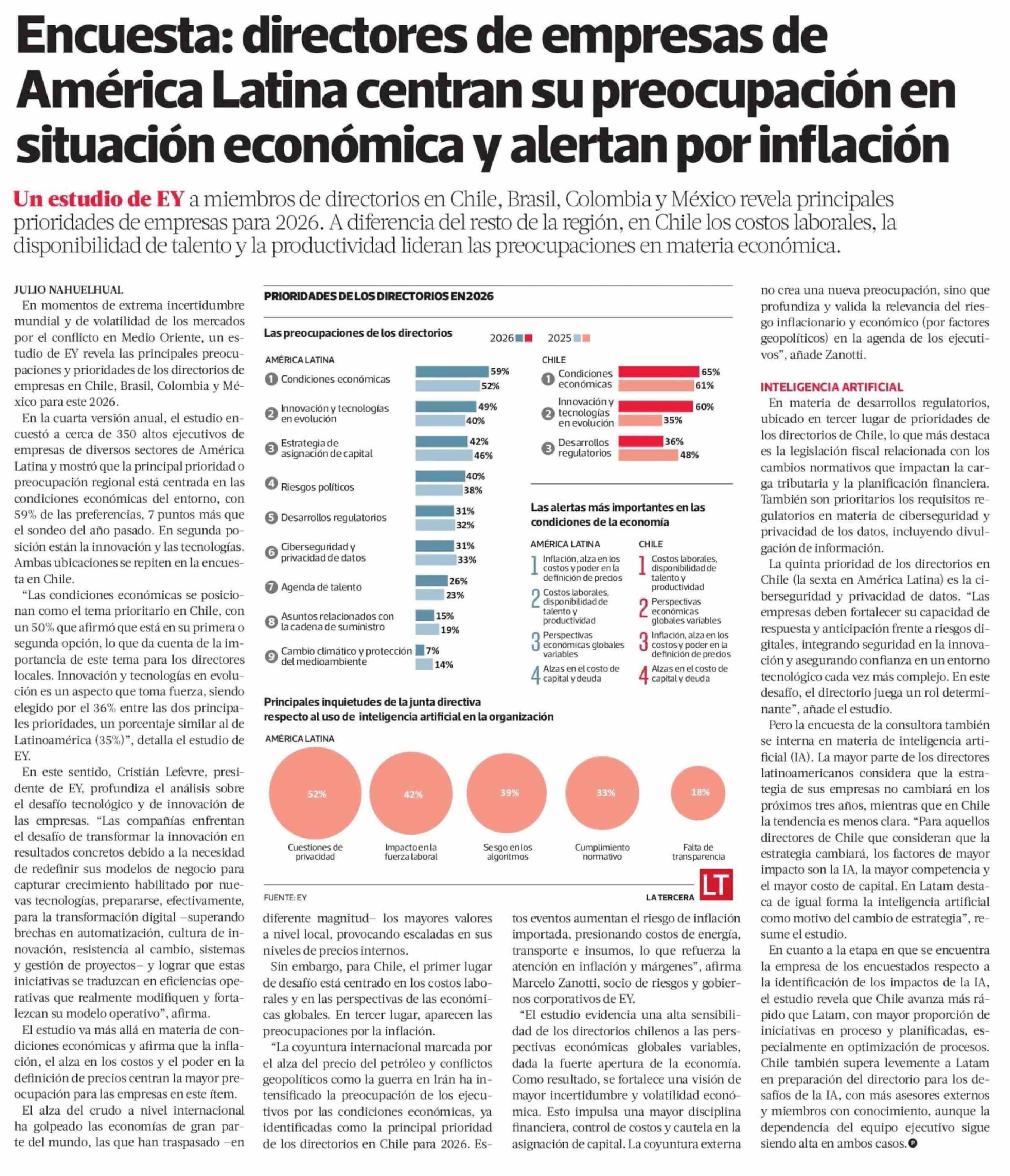 Encuesta: directores de empresas de América Latina centran su preocupación en situación económica y alertan por inflación