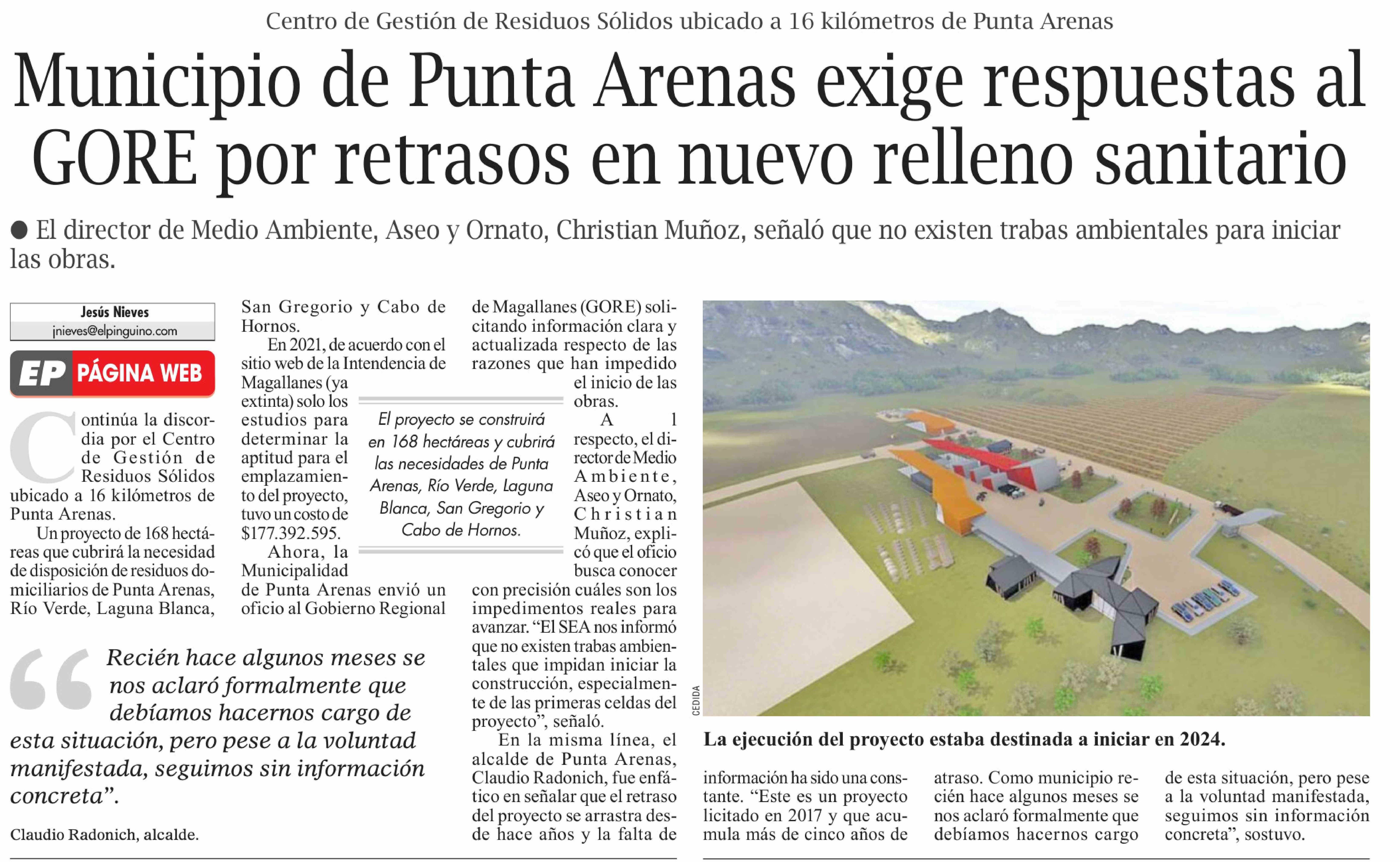 Municipio de Punta Arenas exige respuestas al GORE por retrasos en nuevo relleno sanitario